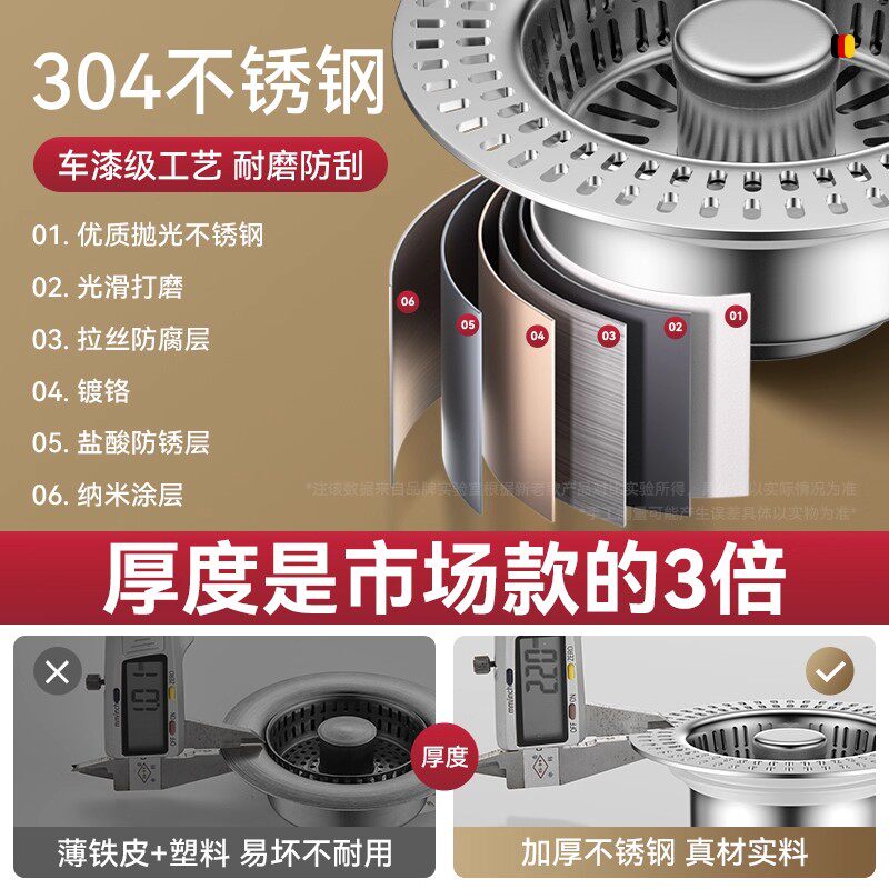 九牧王厨房水槽漏塞滤网不锈钢弹跳过滤器洗菜盆洗碗槽漏水塞通用