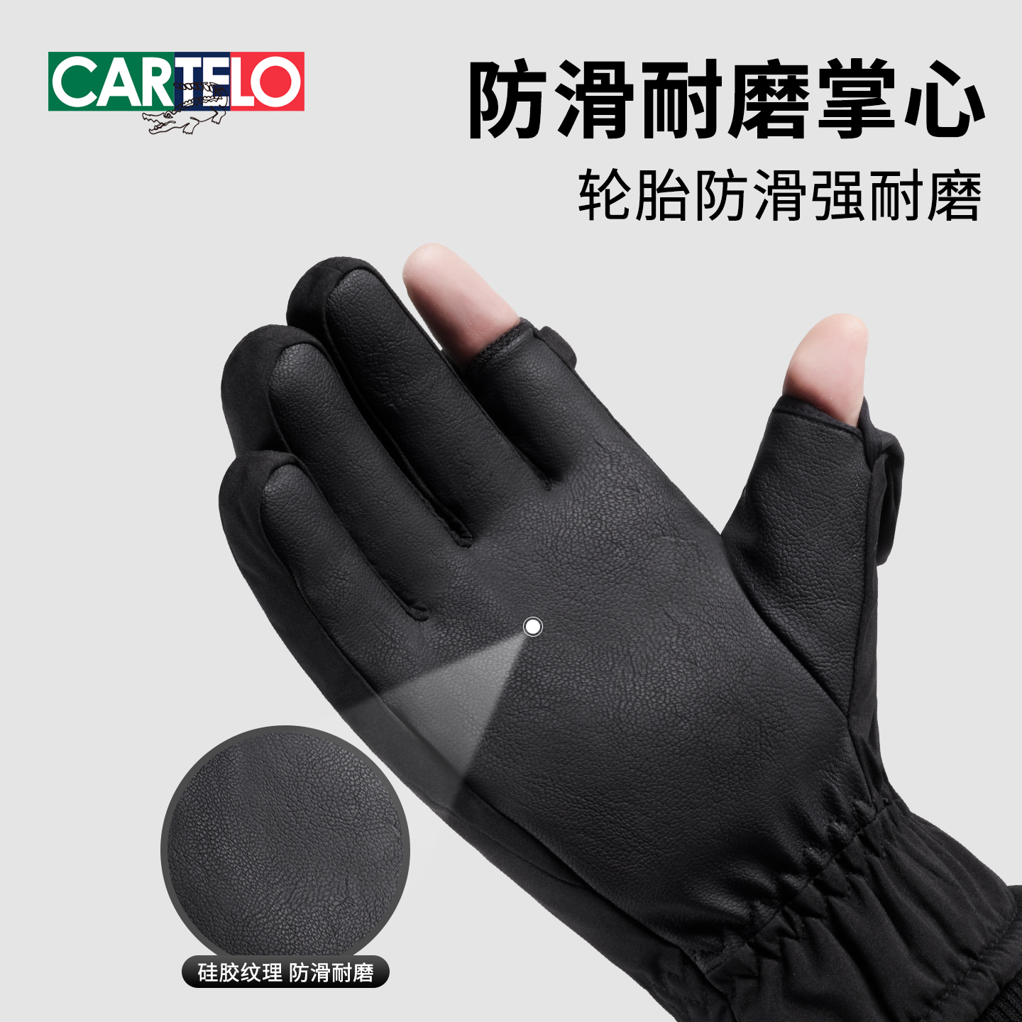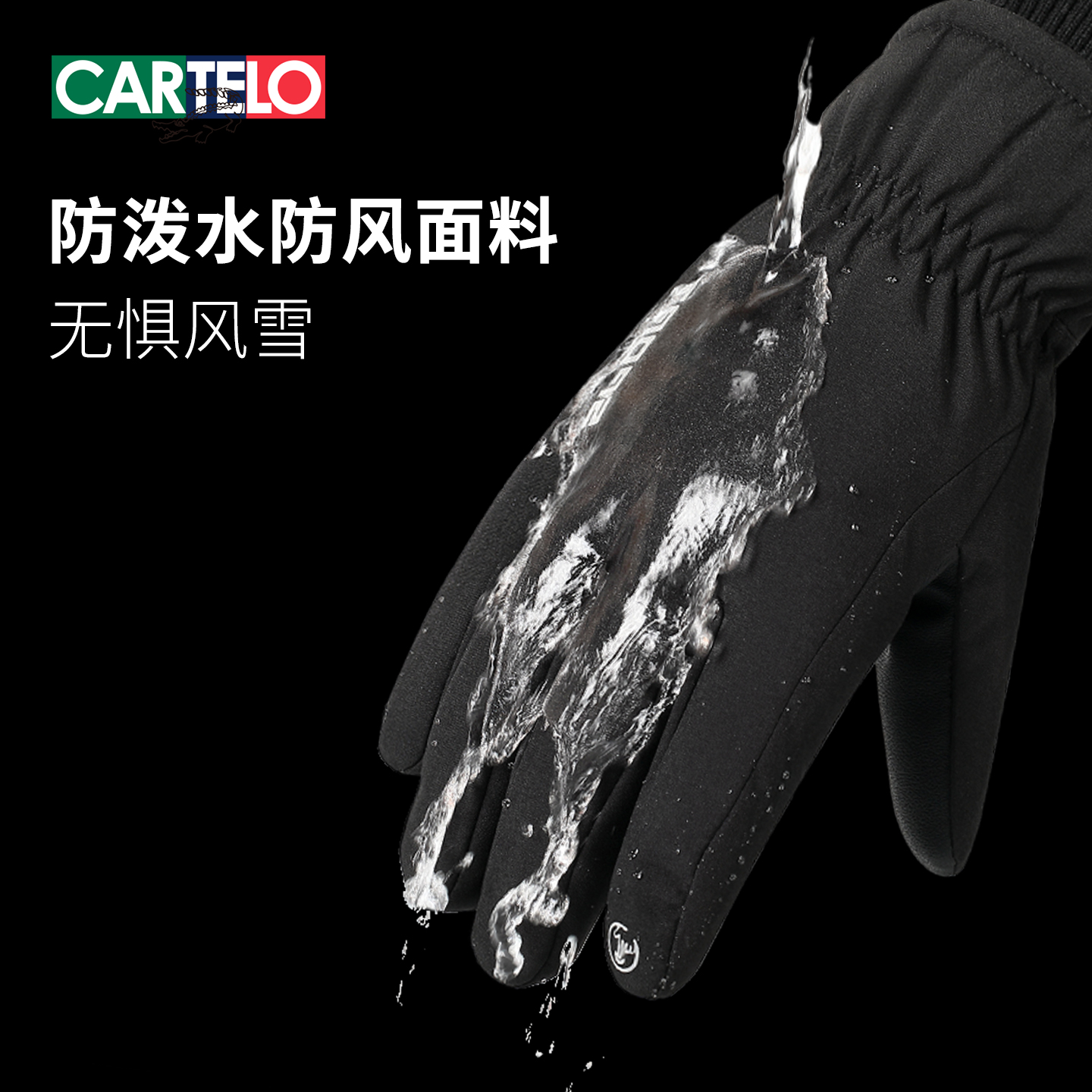 卡帝乐鳄鱼手套男士冬季保暖骑行摩托车防寒加绒加厚触屏棉手套女