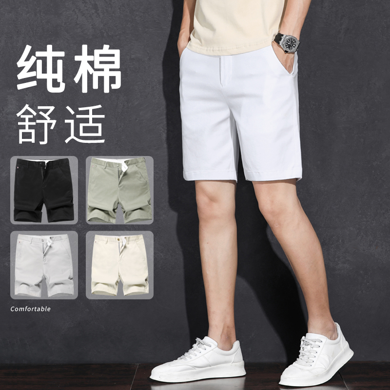 夏季纯棉白色休闲短裤男士宽松薄款5分中裤韩版潮流百搭五分裤男