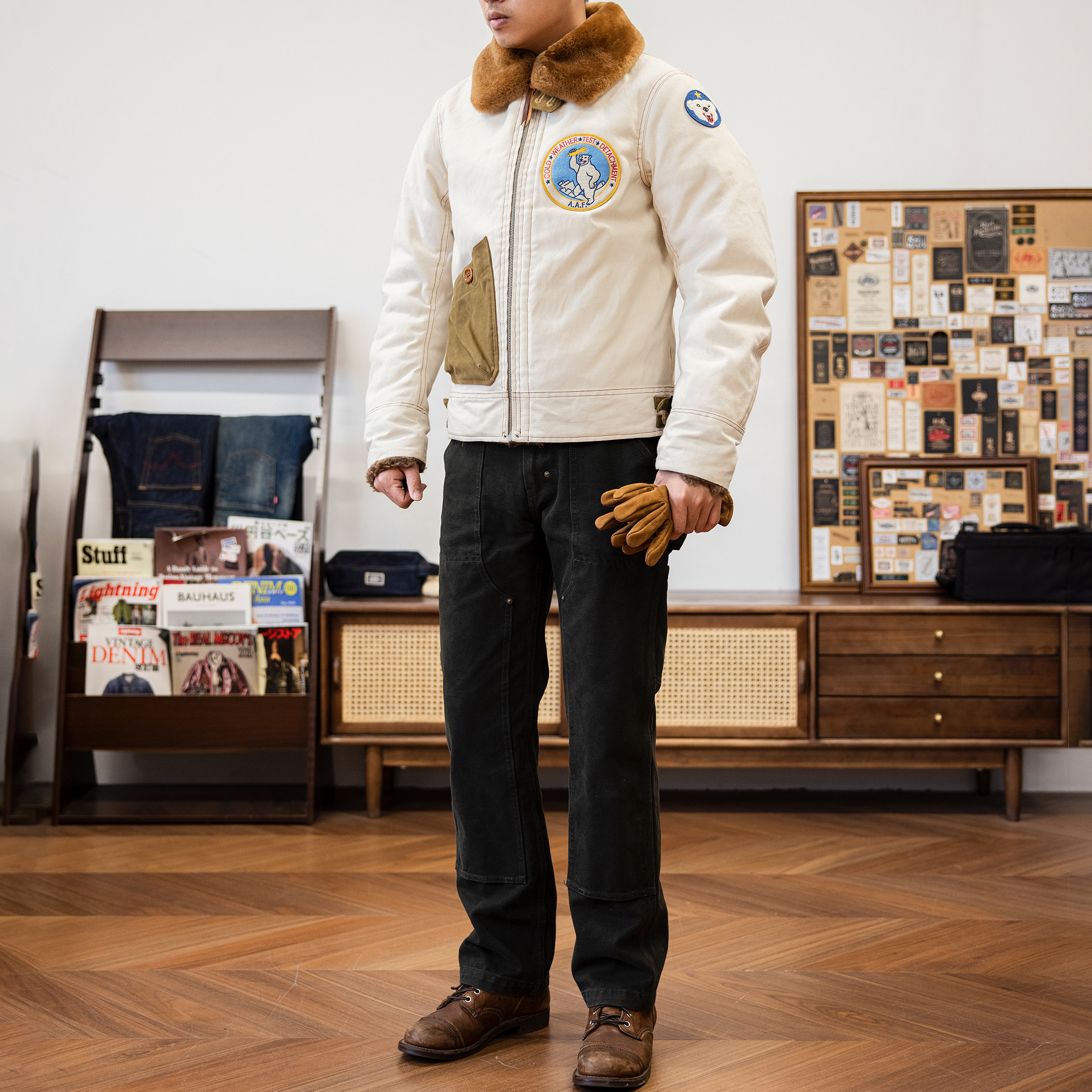 红风 白熊S-3飞行夹克男秋冬美式空军加厚羊毛棉服复古工装外套