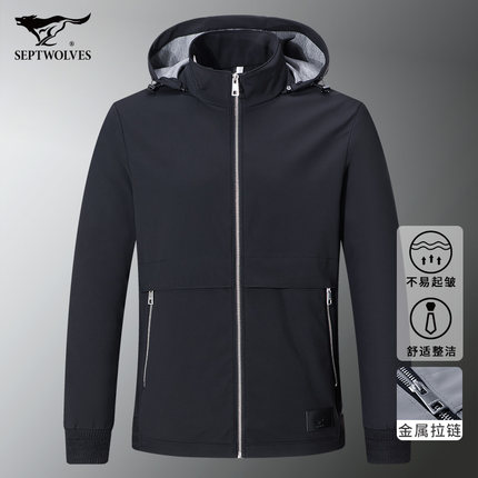 七匹狼男装外套秋季新款针织开襟连帽可拆运动休闲潮牌男士夹克衫