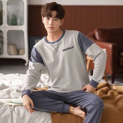 新款男士睡衣春秋季纯棉长袖韩版运动可外穿全棉加大码家居服套装