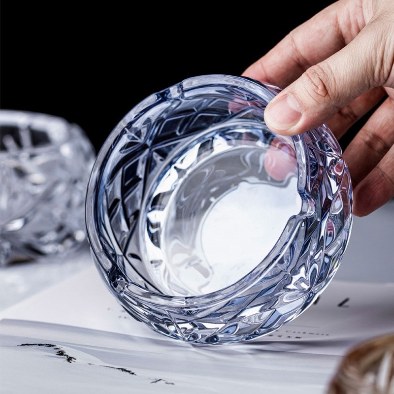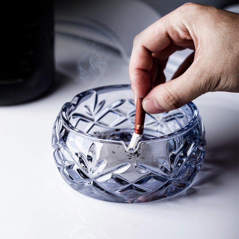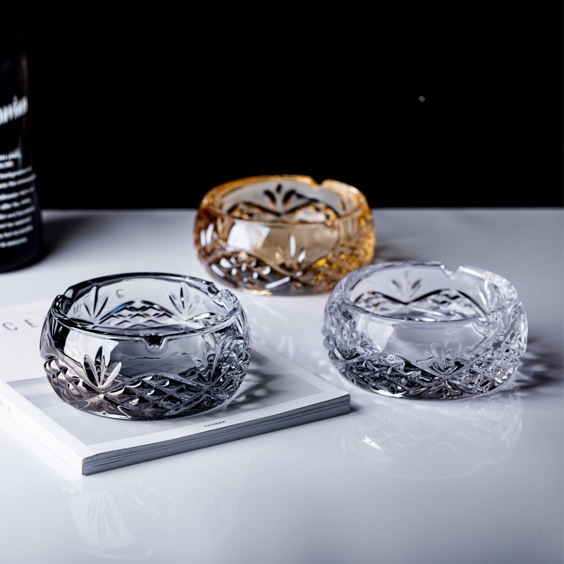 创意浮雕刻花玻璃烟灰缸复古客厅摆件烟器圆形烟盅烟灰缸定制
