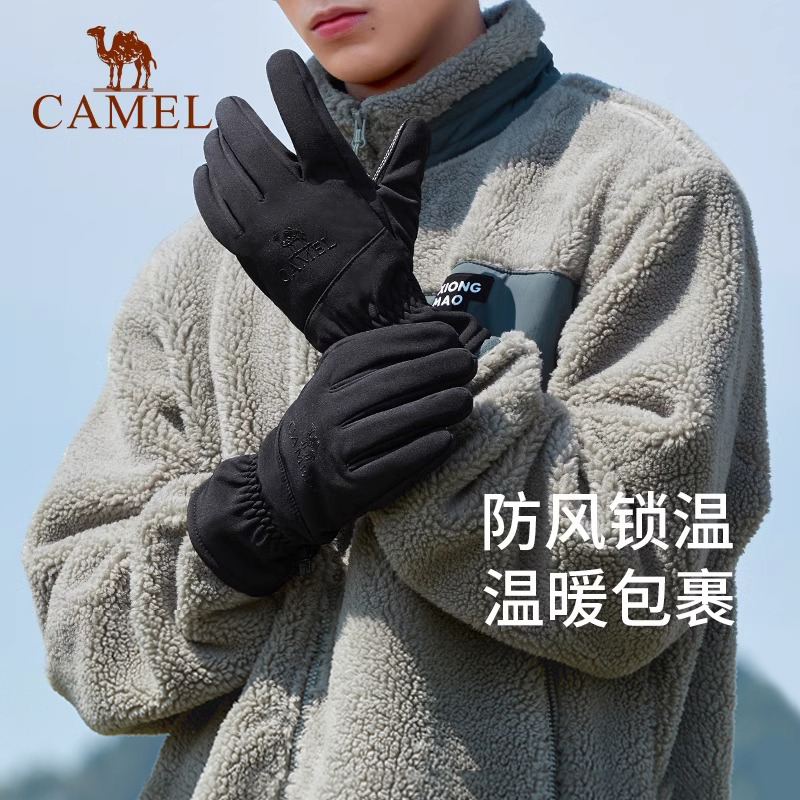 骆驼户外骑电动车手套男冬季防风保暖内里加绒骑车手套防水可触屏