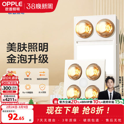 欧普照明灯暖浴霸led灯排气扇一体集成吊顶卫生间取暖家用暖风机