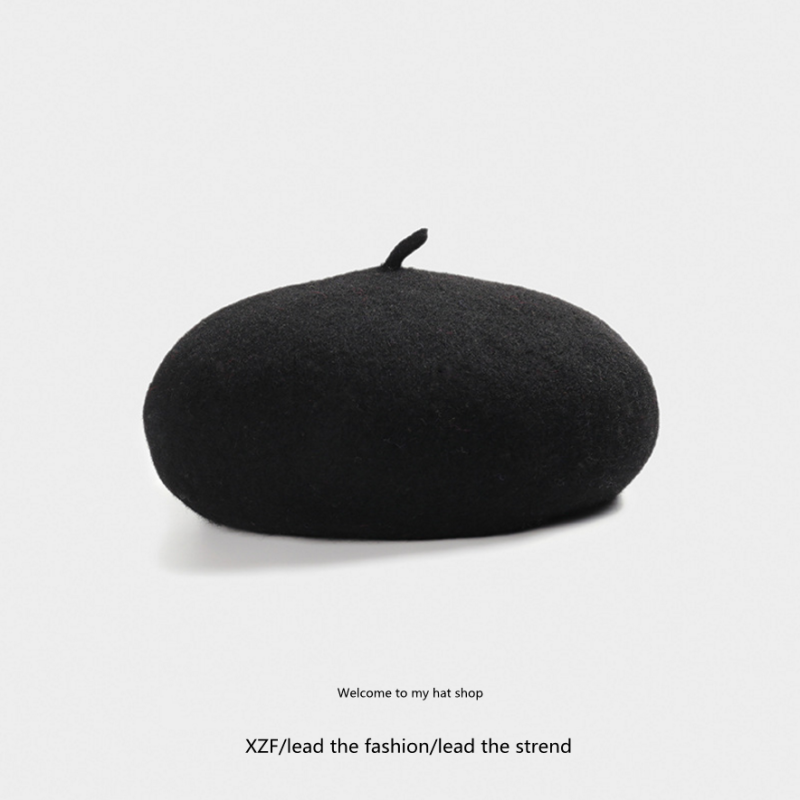 赵露思桑稚同款羊毛呢贝雷帽女英伦复古日系黑色画家帽秋冬蓓蕾帽
