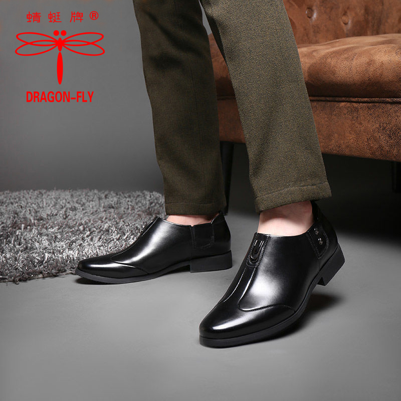 蜻蜓牌正品真皮男士皮鞋新款商务正装牛皮鞋韩版尖头黑色软底皮鞋