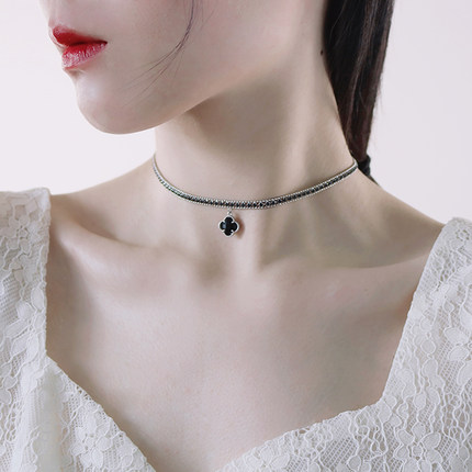 M家气质黑色四叶草choke项圈高级感水晶短款锁骨链简约新款颈链女