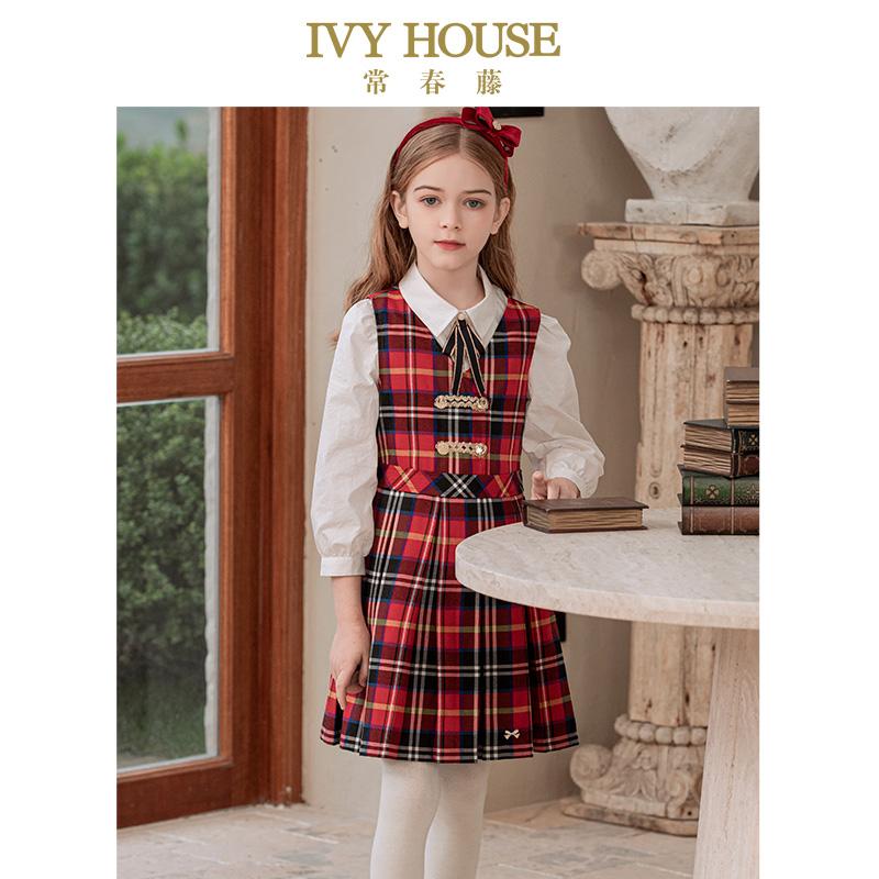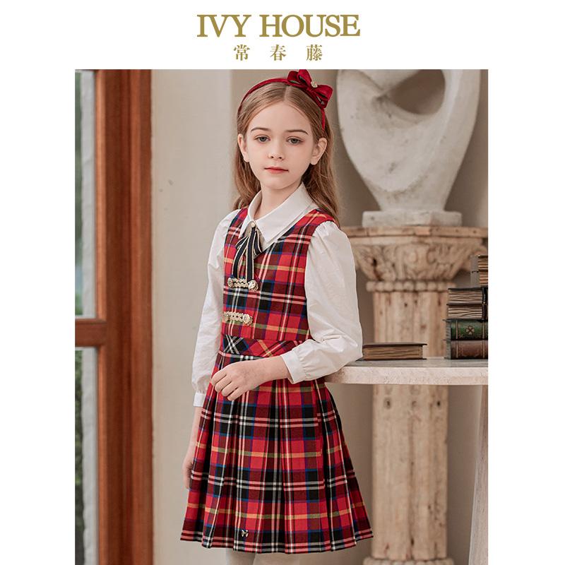 IVY HOUSE常春藤儿童装女童连衣裙秋季款 格纹背心裙经典学院文艺