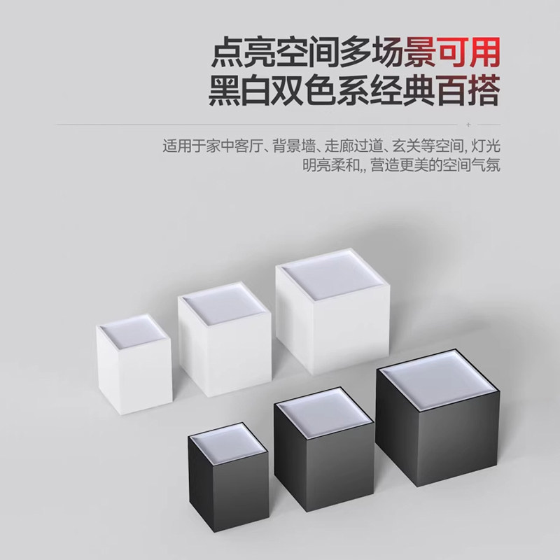 凯慕思全光谱明装筒灯led方形吸顶式家用客厅斗胆盒子无主灯照明