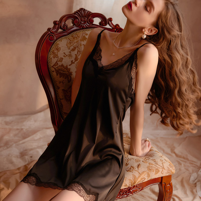 大码性感睡衣高级感仿真丝蕾丝睡裙女新款夏季胖妹妹200斤