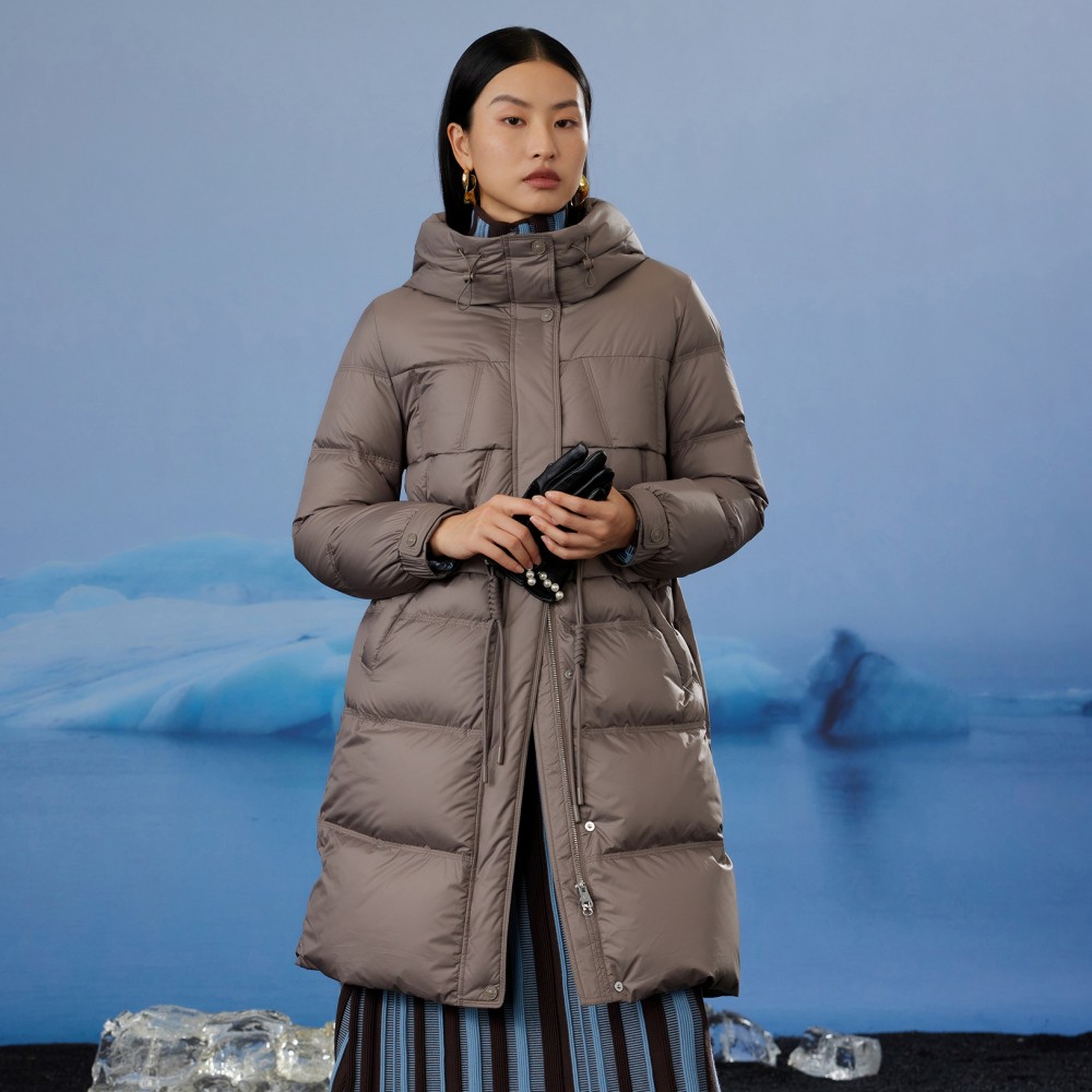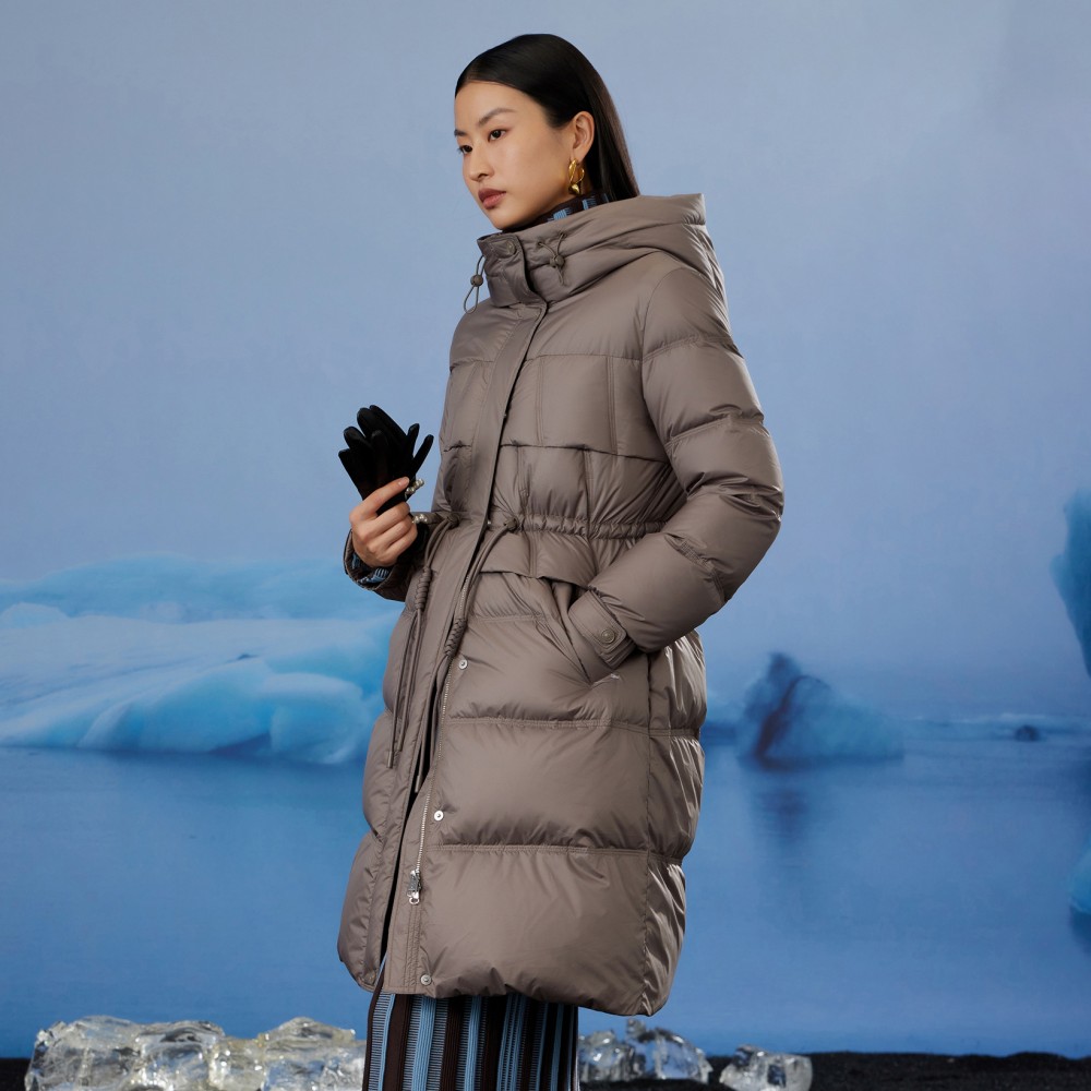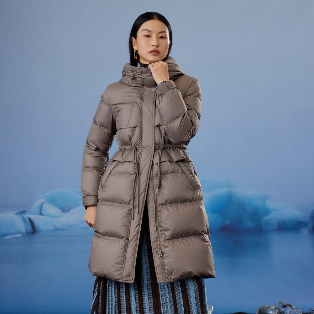 歌锦抗冻耐寒90%白鸭绒连帽加厚保暖羽绒服外套女中长款冬季外套