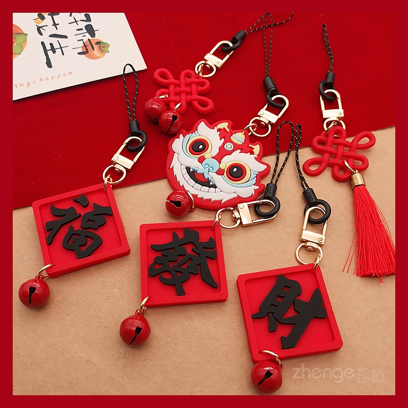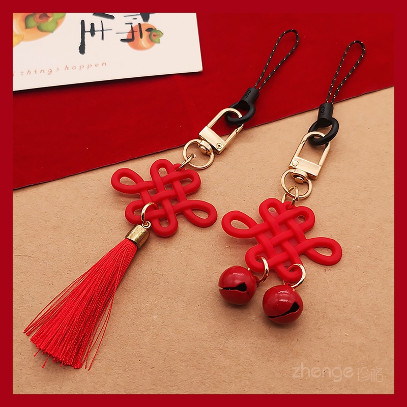 中国结铃铛流苏吊坠ins新年风手机包包挂件男女手机壳小吊绳背包拉链挂饰品diy个性喜庆中国红春节招财配饰