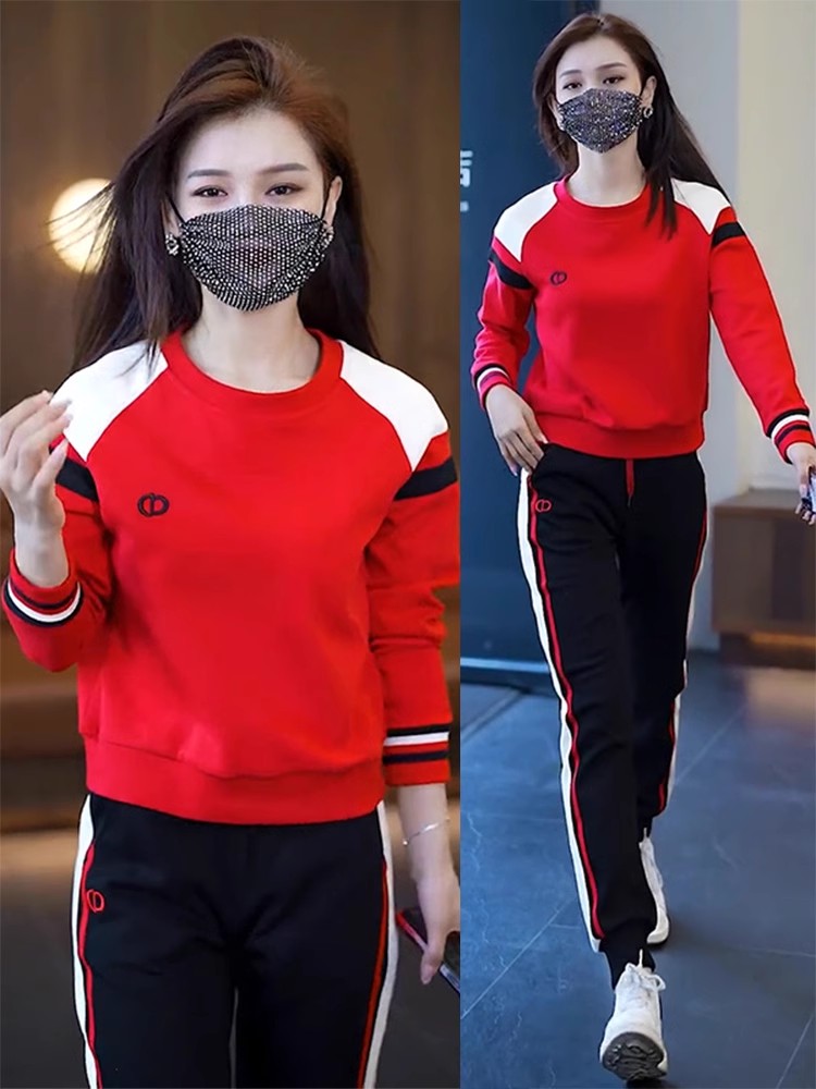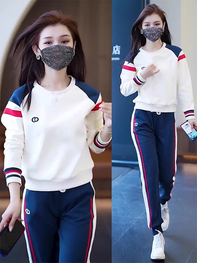 休闲运动套装女2024年春秋冬季新款时尚减龄卫衣卫裤跑步服两件套