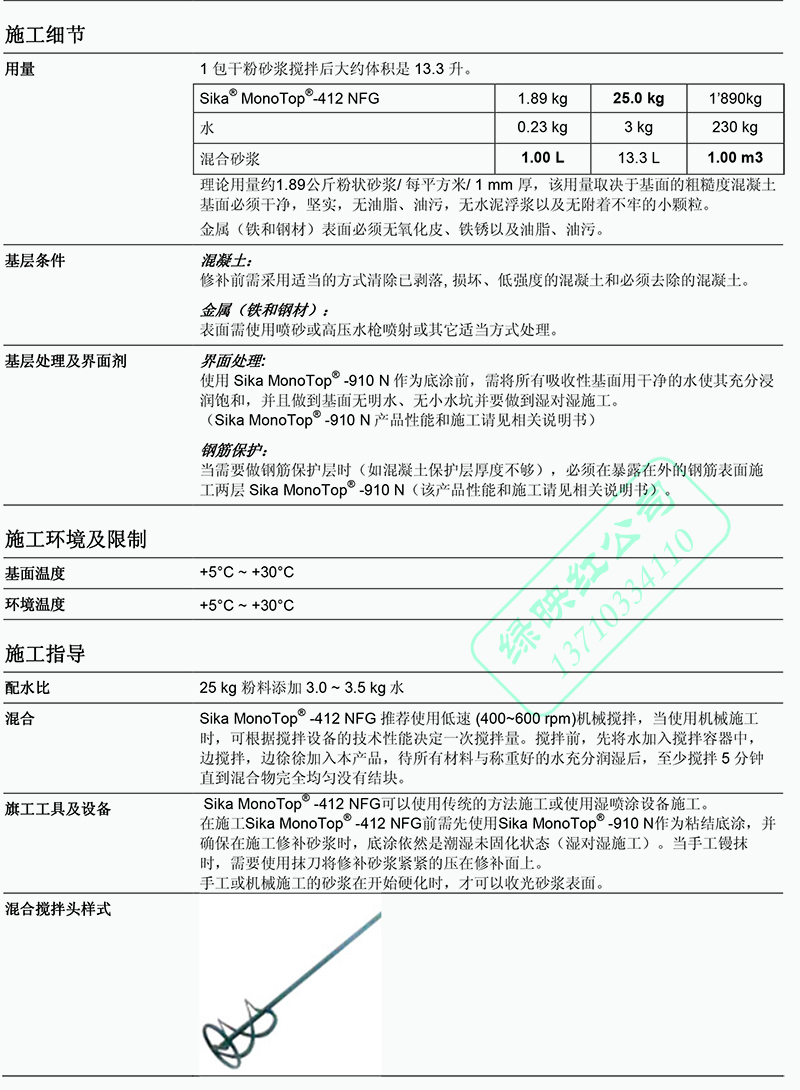 西卡Sika412NFG聚合物改性纤维增强含阻锈单组份结构修补水泥砂浆