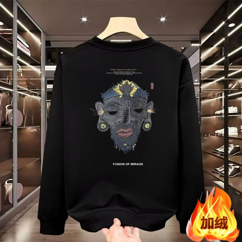 秋冬季ins长袖卫衣男痞帅卡通印花个性修身百搭潮流精神小伙体恤