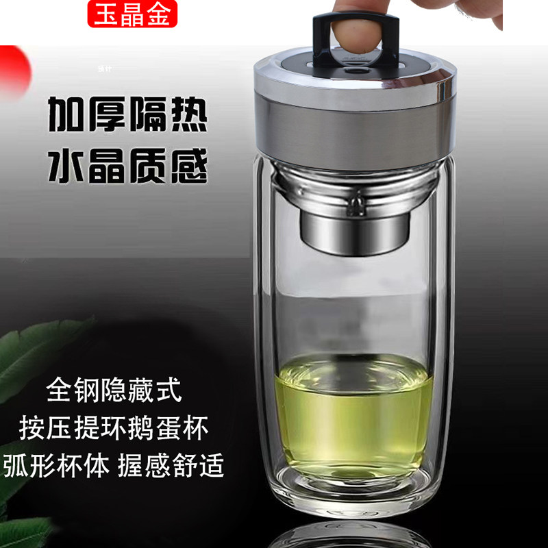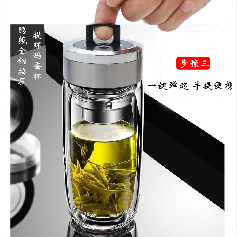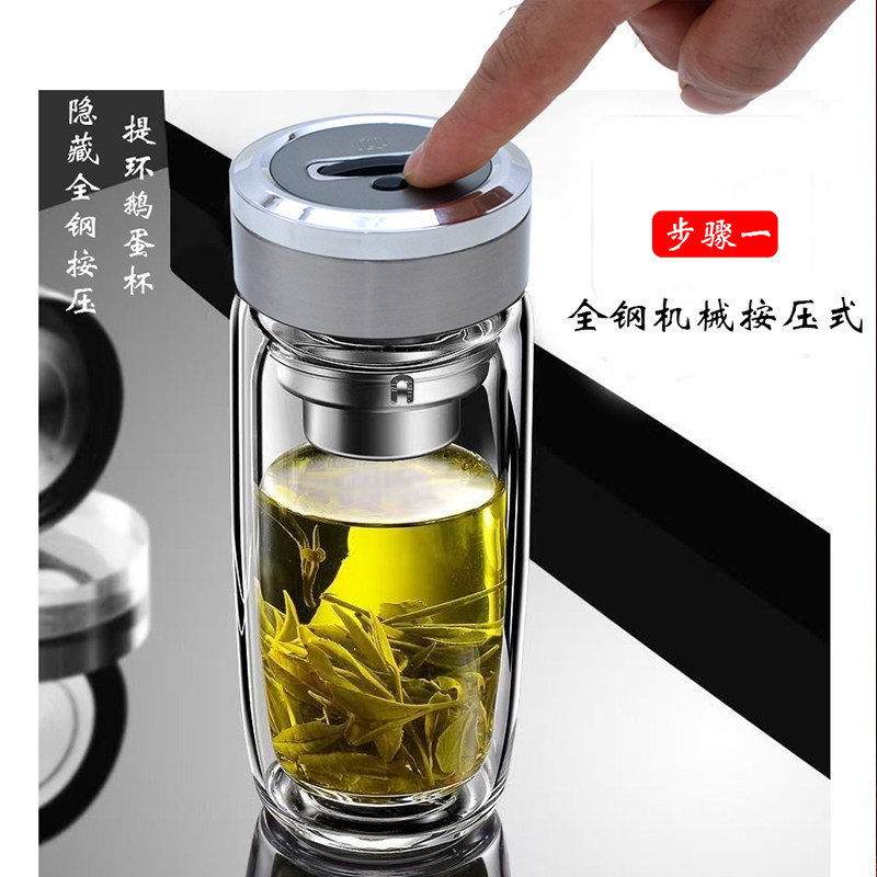 鹅蛋杯机械按压大容量提环办公泡茶家用便携双层隔热鹅蛋茶杯