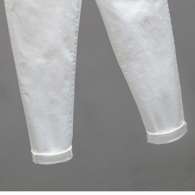 牛仔裤女白色春夏2026新款显瘦宽松弹力小脚哈伦裤高腰刺绣萝卜裤