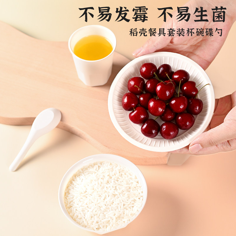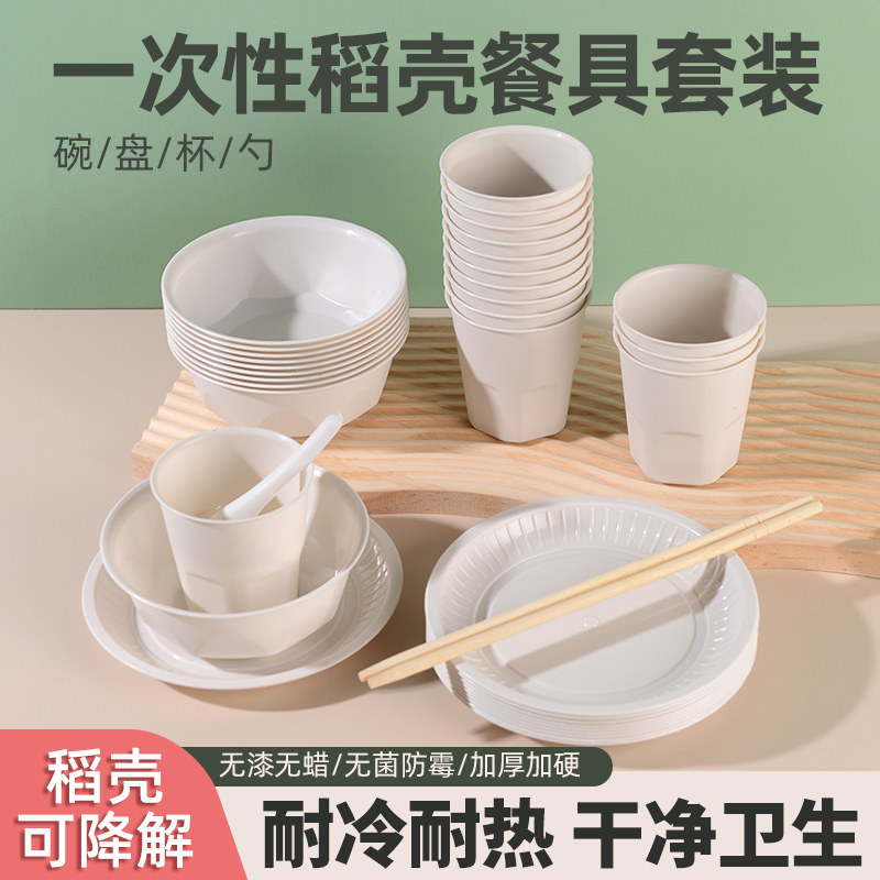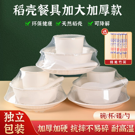 加硬加厚稻壳一次性餐具四件套装餐饮酒席碗筷杯碟勺套装大碗包邮