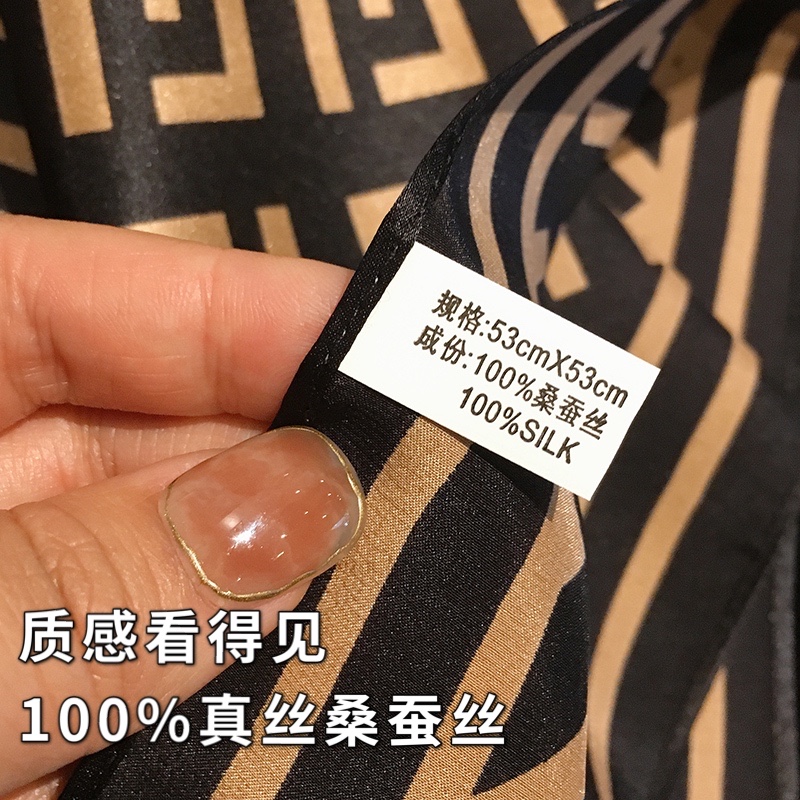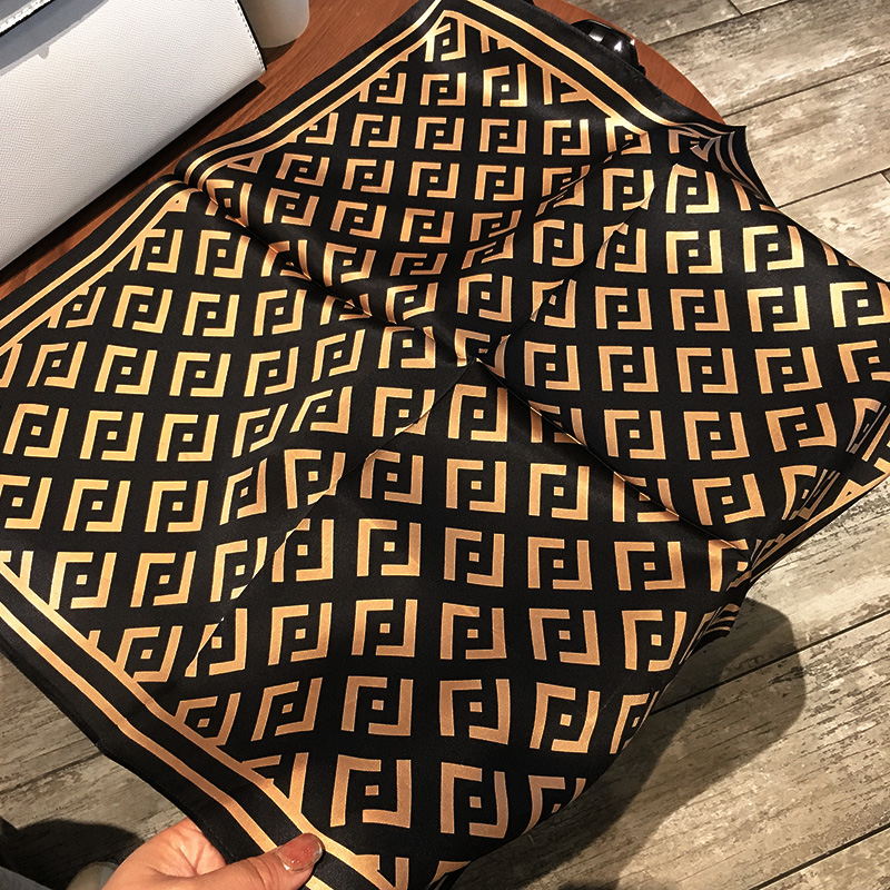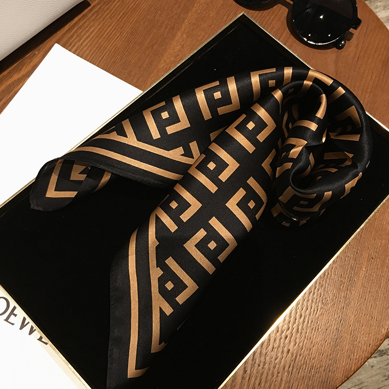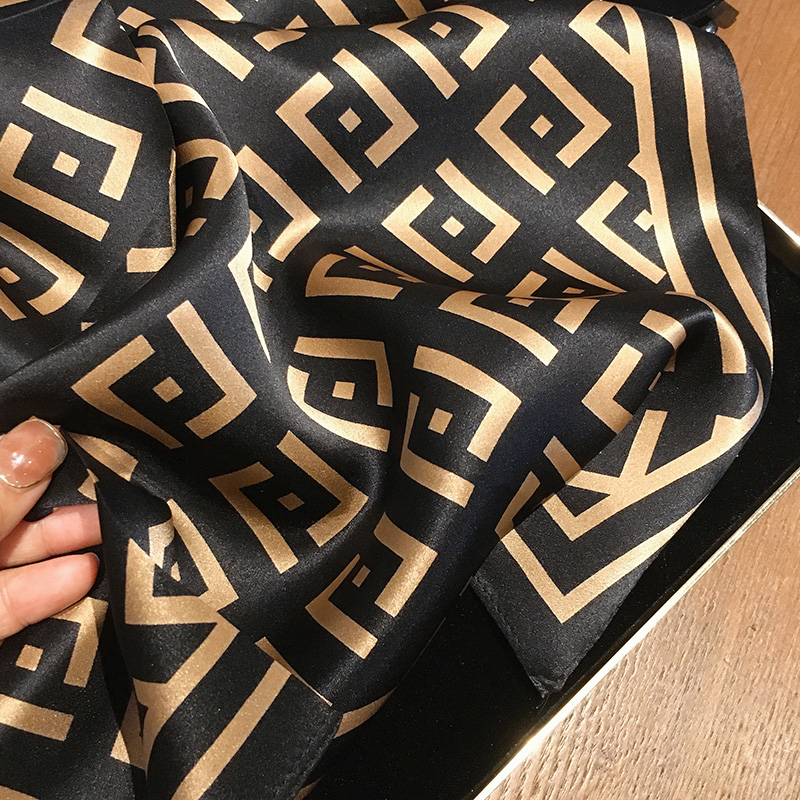 咖啡方格春秋真丝小方巾女复古丝巾百搭装饰领巾桑蚕丝小围巾薄款