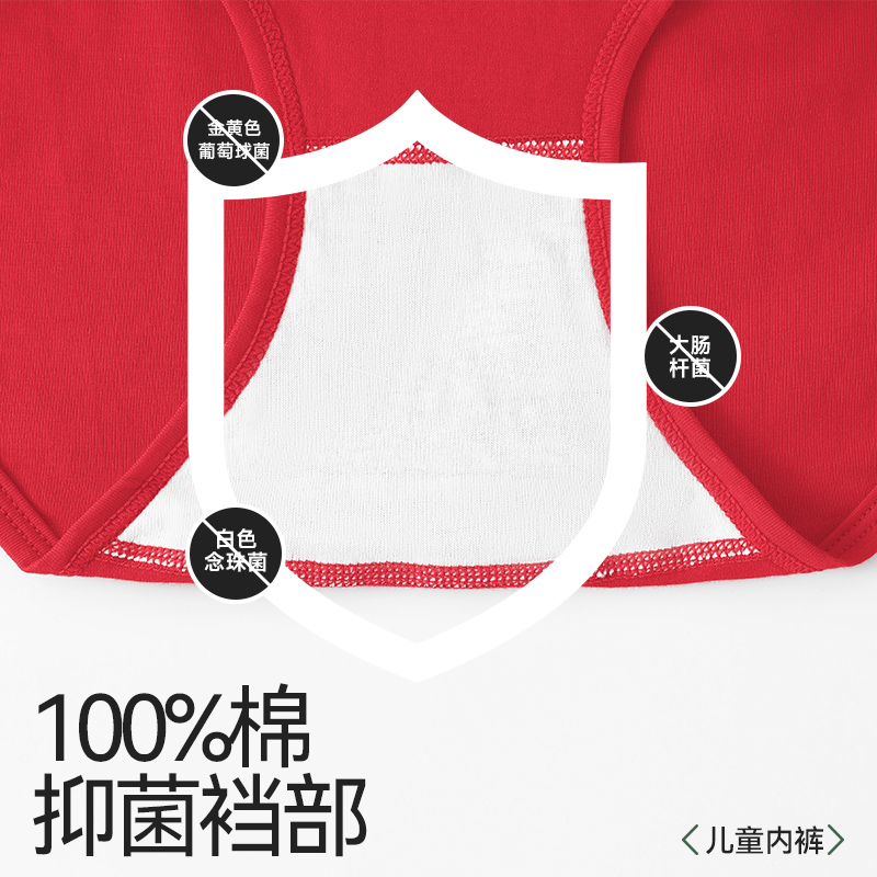 euv 女童红色内裤儿童纯棉a类小女孩三角裤中大童本命年少女短裤