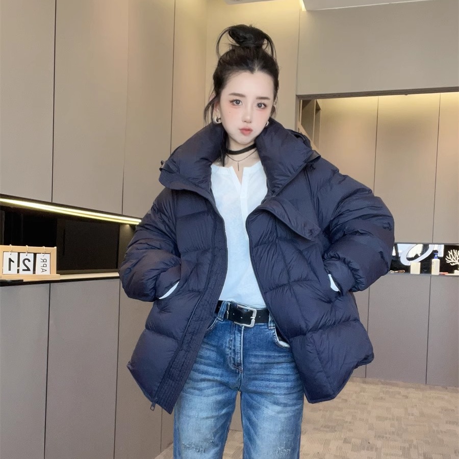 中长款羽绒服女2025新款冬季外套纯色连帽面包服欧洲站时髦上衣潮