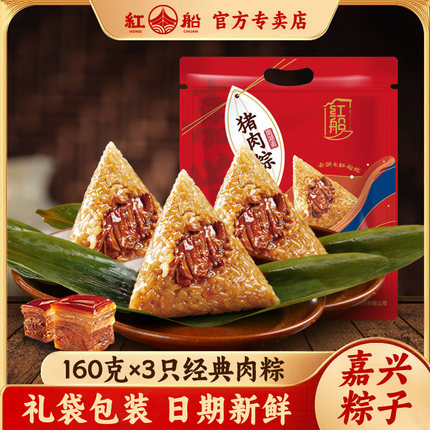 红船嘉兴肉粽新鲜真空粽子160g中等大小鲜肉粽端午节礼盒散装特产
