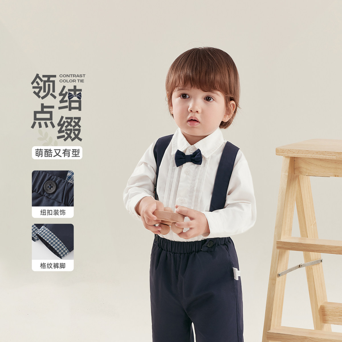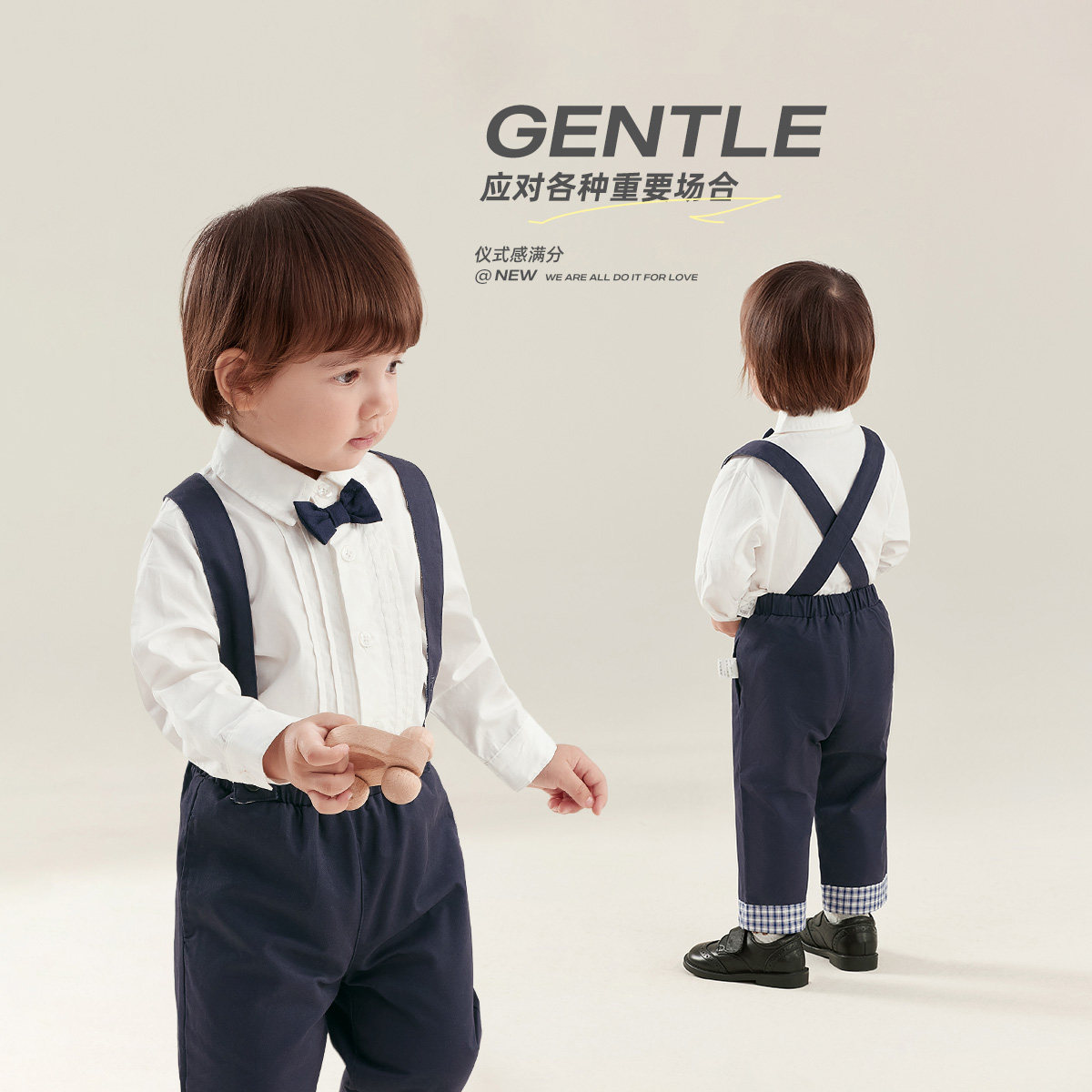 [2026春季新品]男童背带裤套装休闲春装宝宝春童装小童两件套儿童