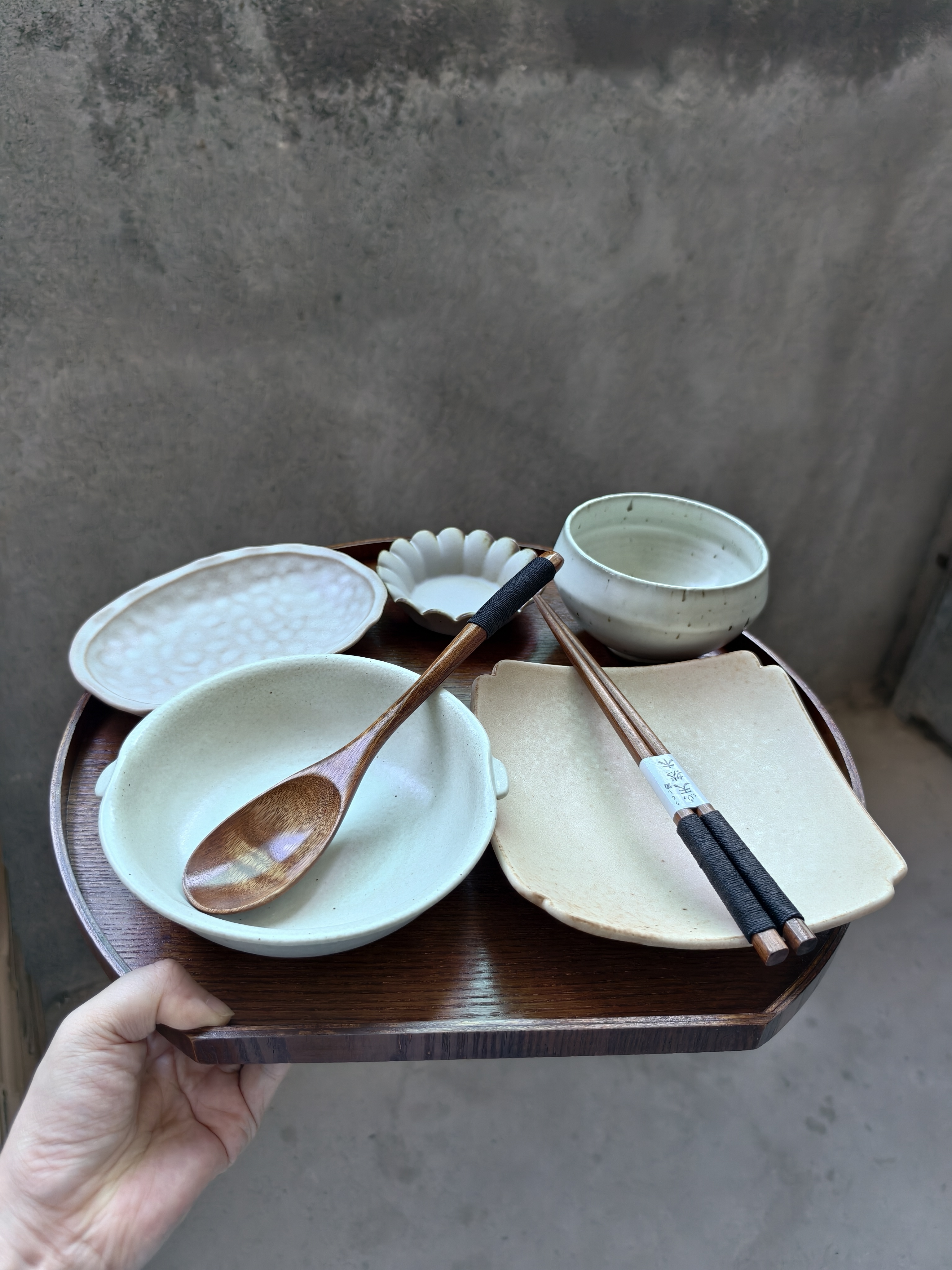 景德镇粗陶一人食餐具套装 早餐餐具 减脂餐具 分餐制独居一人食