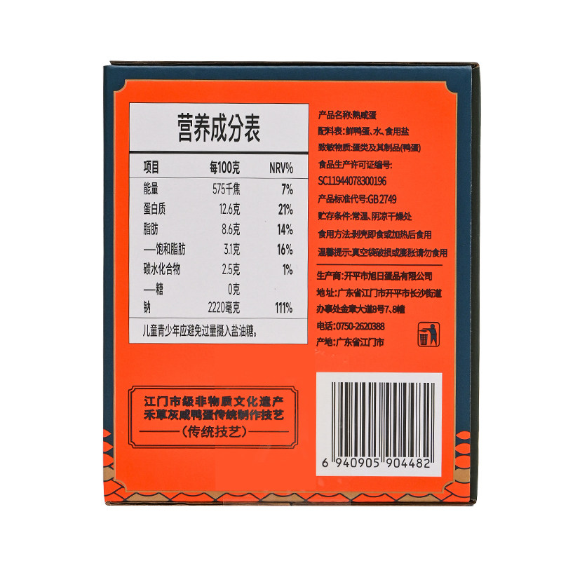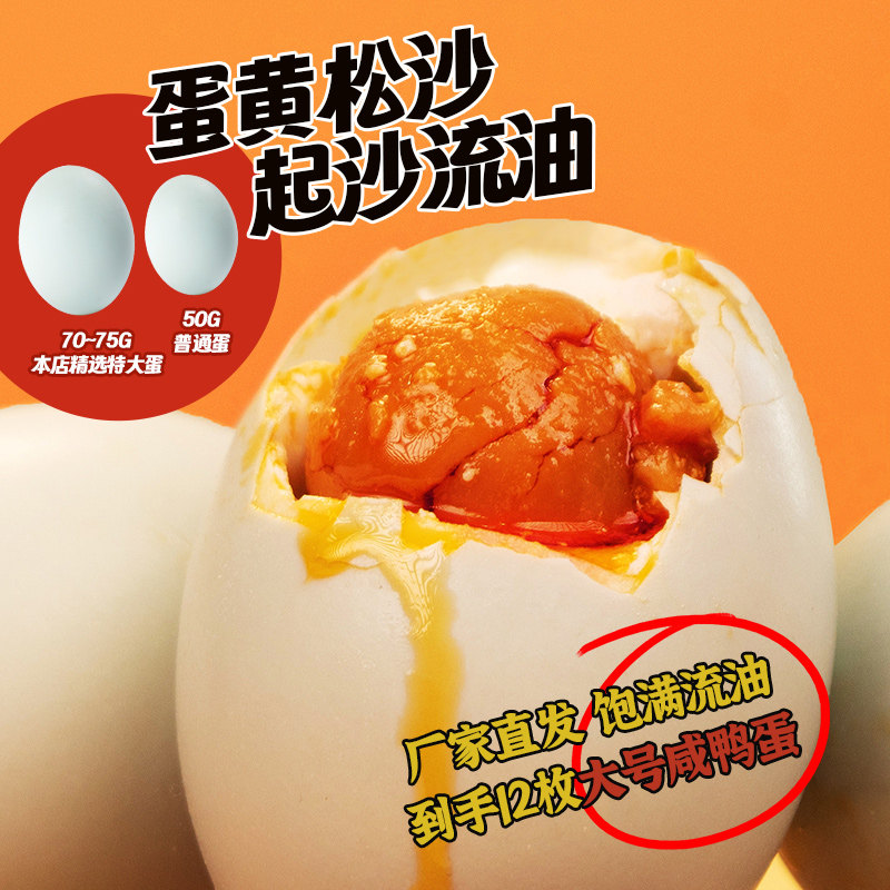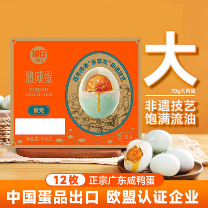 旭日礼盒禾草灰熟咸鸭蛋12枚*70g流油大鸭蛋咸香配粥下饭