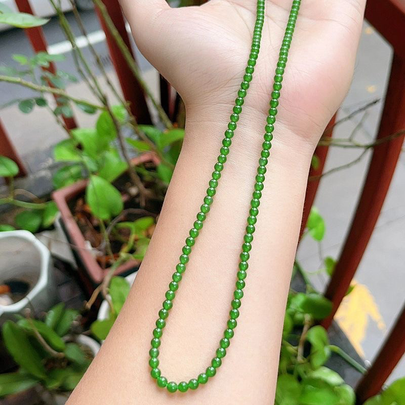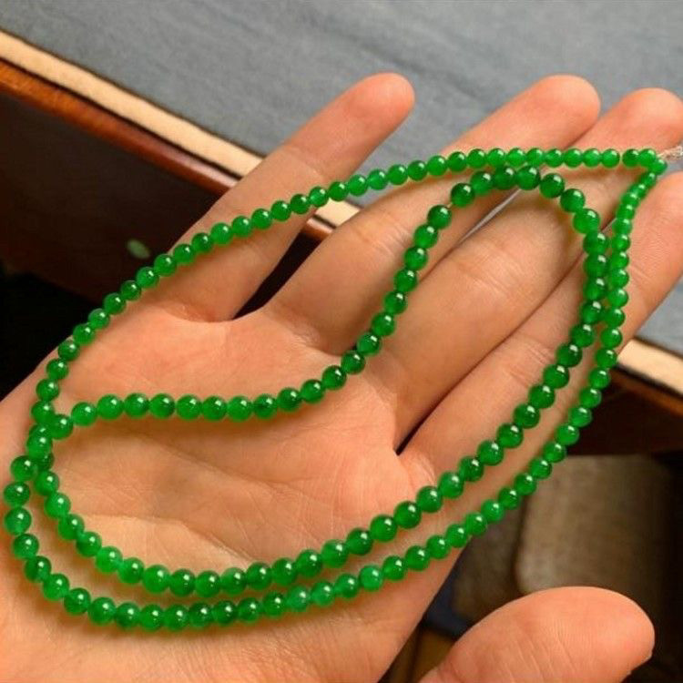冰种帝王绿阳绿翡翠珠串项链缅甸天然正品满绿小米珠手串手链女款
