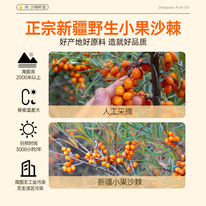 沙棘籽油软胶囊官方旗舰店正品新疆小果内服外用非果原浆果油凝胶
