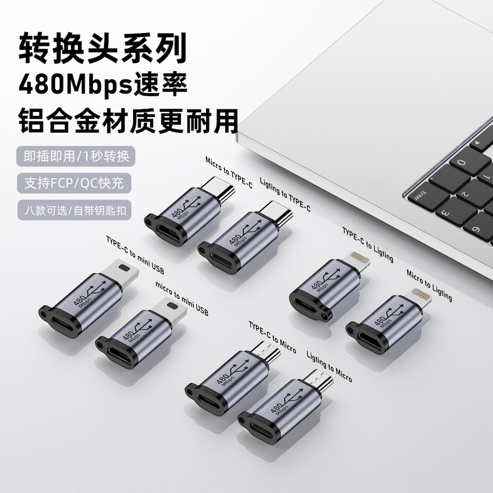适用苹果iPhone华为oppo小米vivo荣耀红米三星安卓typec手机平板通用充电转接头数据线转换器传输快充miniusb