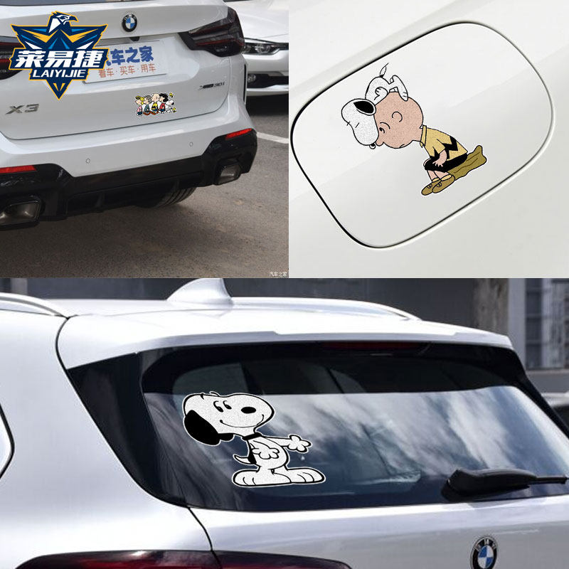 史努比花生漫画狗子猎犬反光电动摩托车汽车贴纸车门身贴后玻璃贴