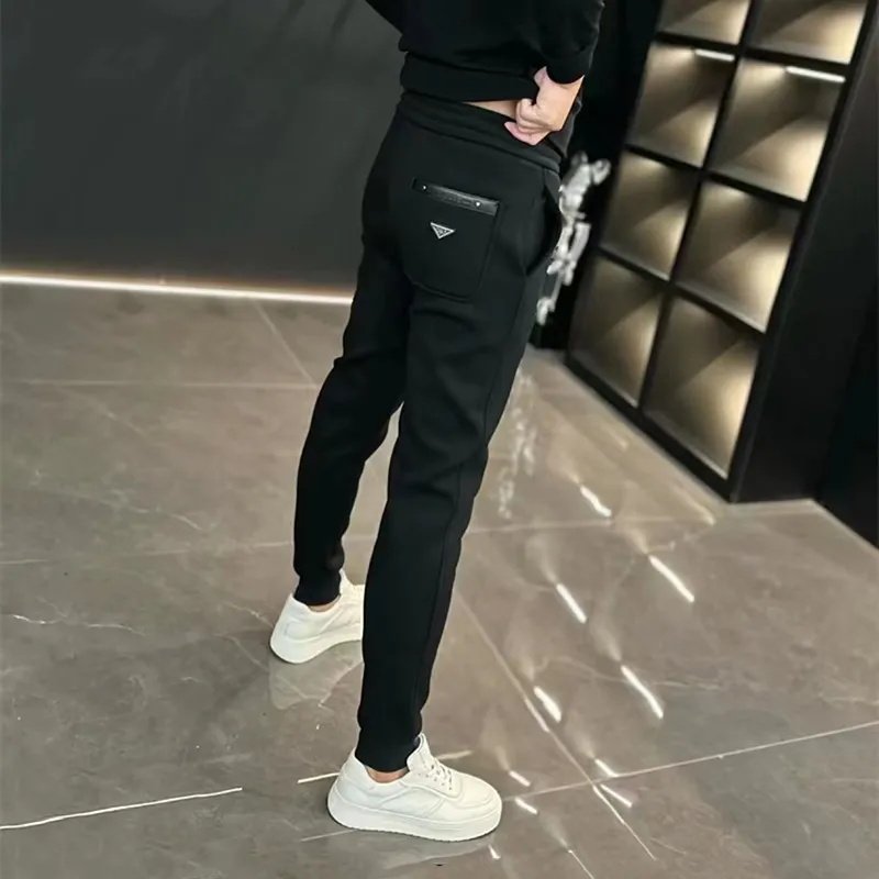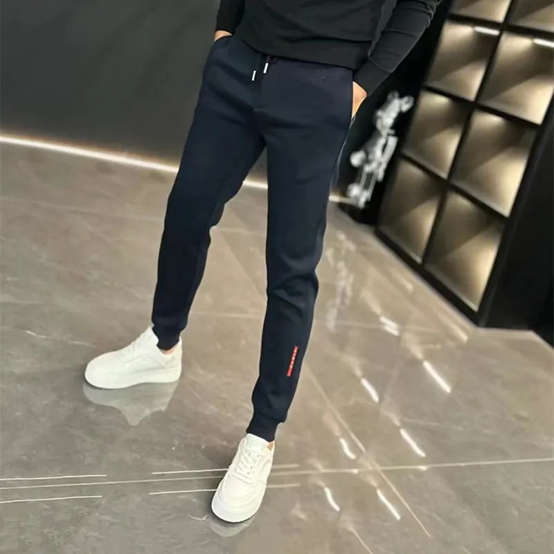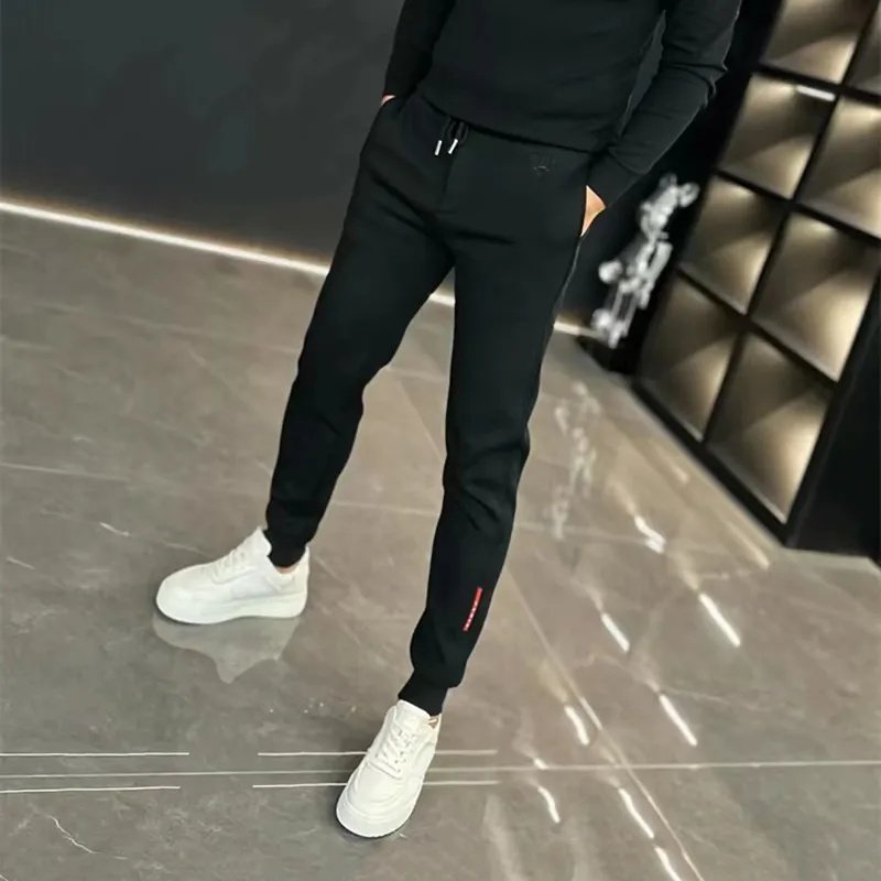 春季显瘦加厚卫裤男欧货高档束脚休闲裤子潮牌修身弹力小脚运动裤