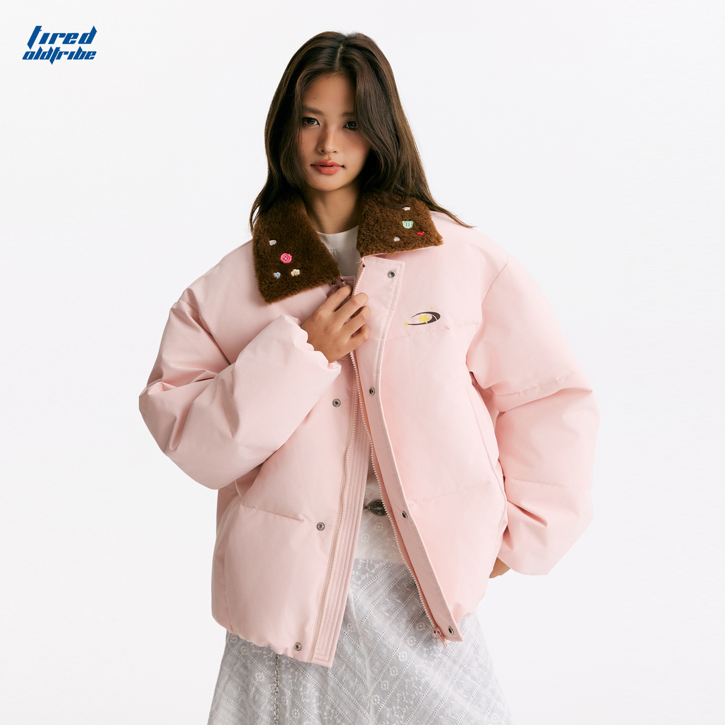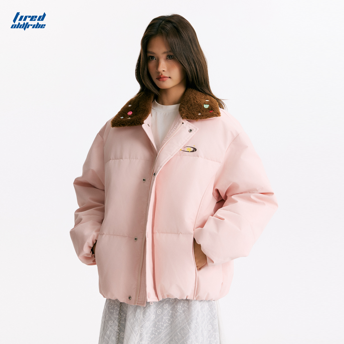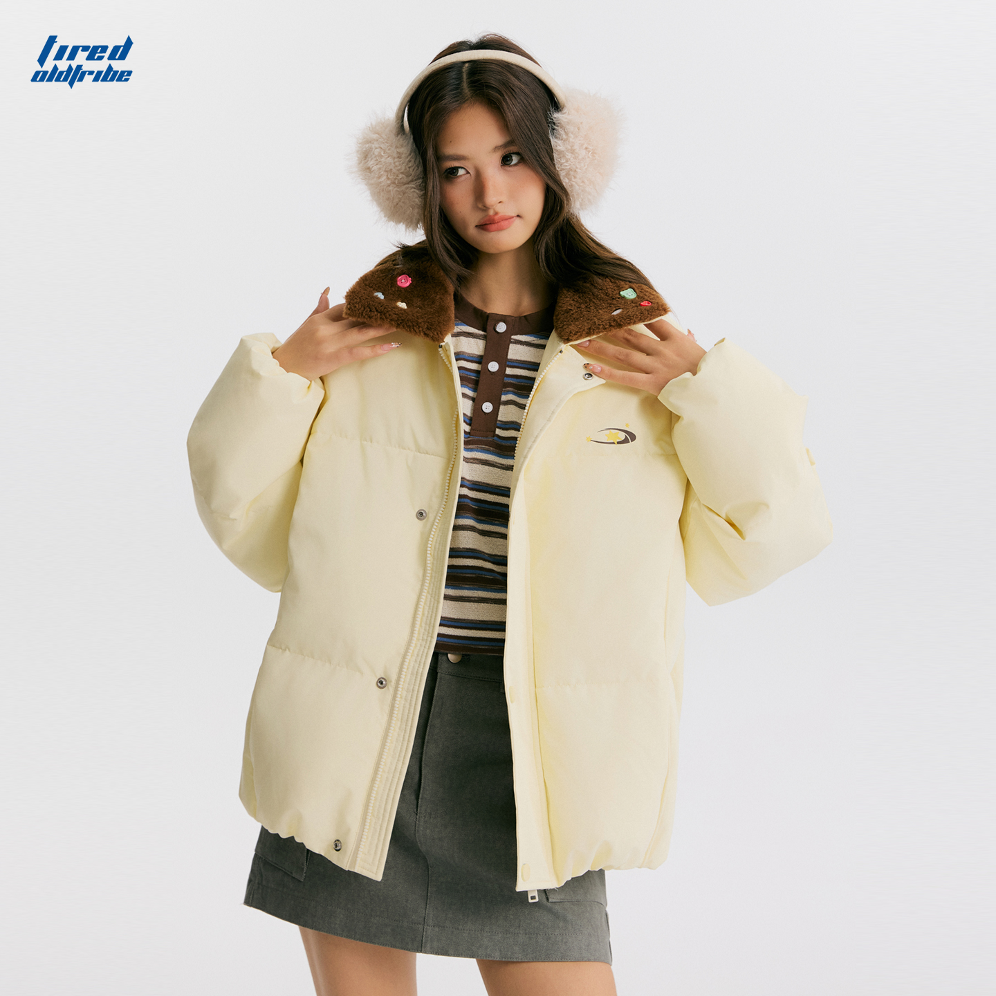 TIRED设计感毛领纽扣保暖棉衣外套冬季情侣面包服宽松加厚棉服潮