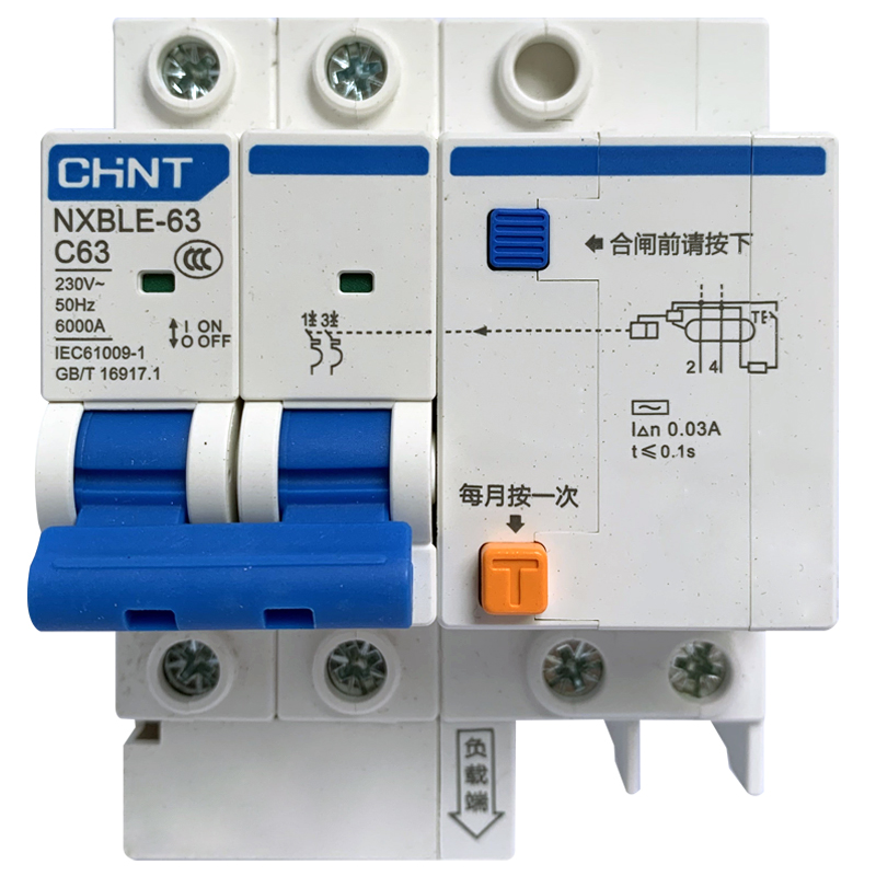正泰漏保双极63A漏电断路器NXBLE-63 2P C63空气开关带漏电保护器