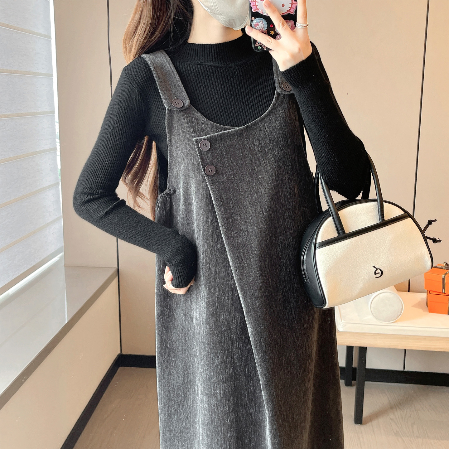 孕妇连衣裙2025新款秋冬款孕期高级感穿搭套装女宽松背带裙孕妇装