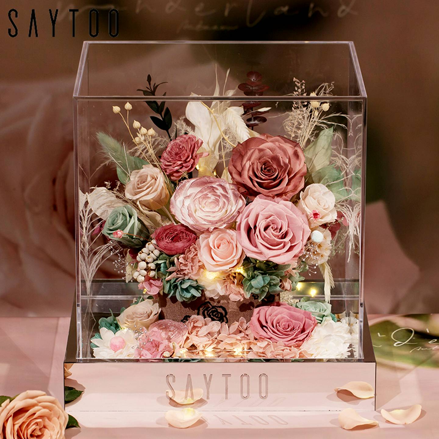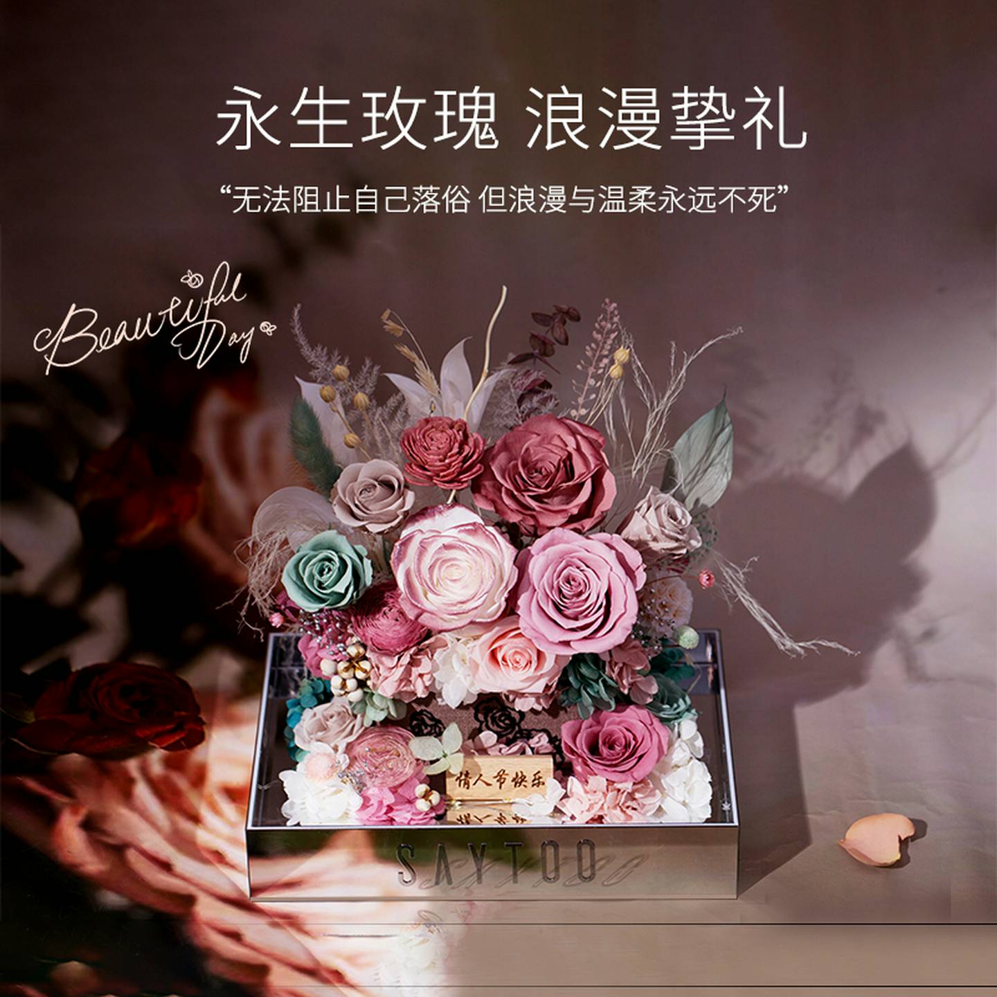 saytoo永生花玫瑰的故事高级干燥花束结婚情人节生日礼物送女友老