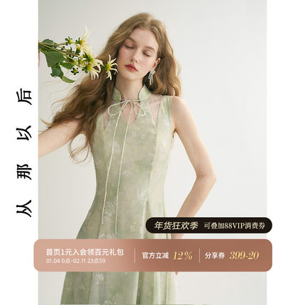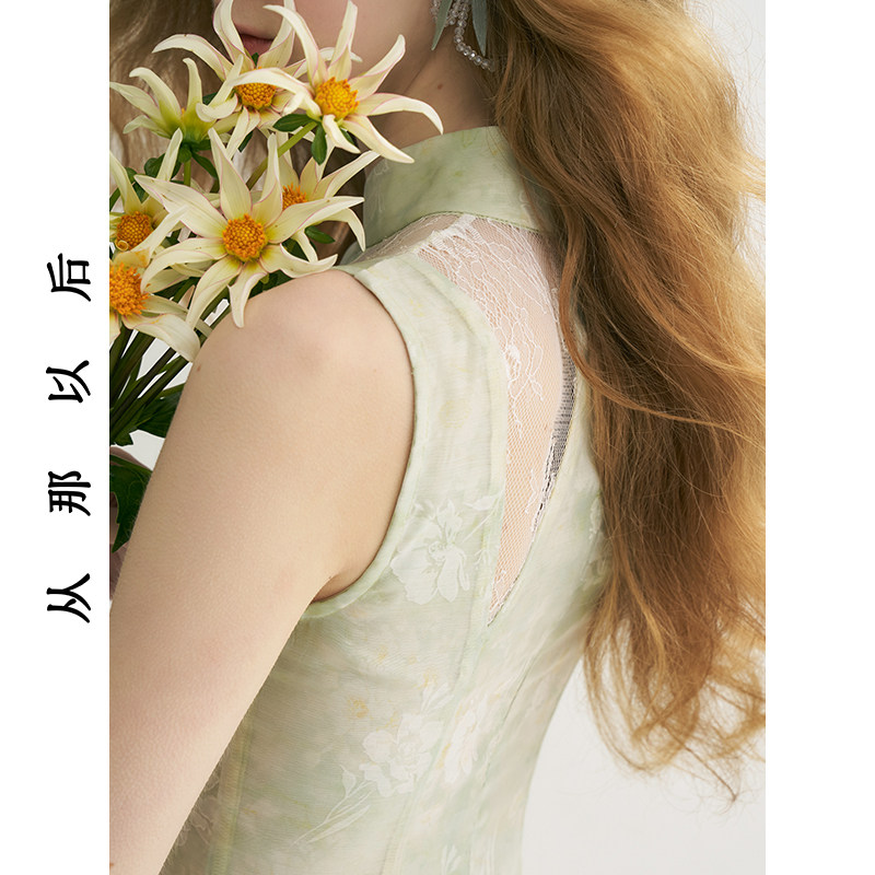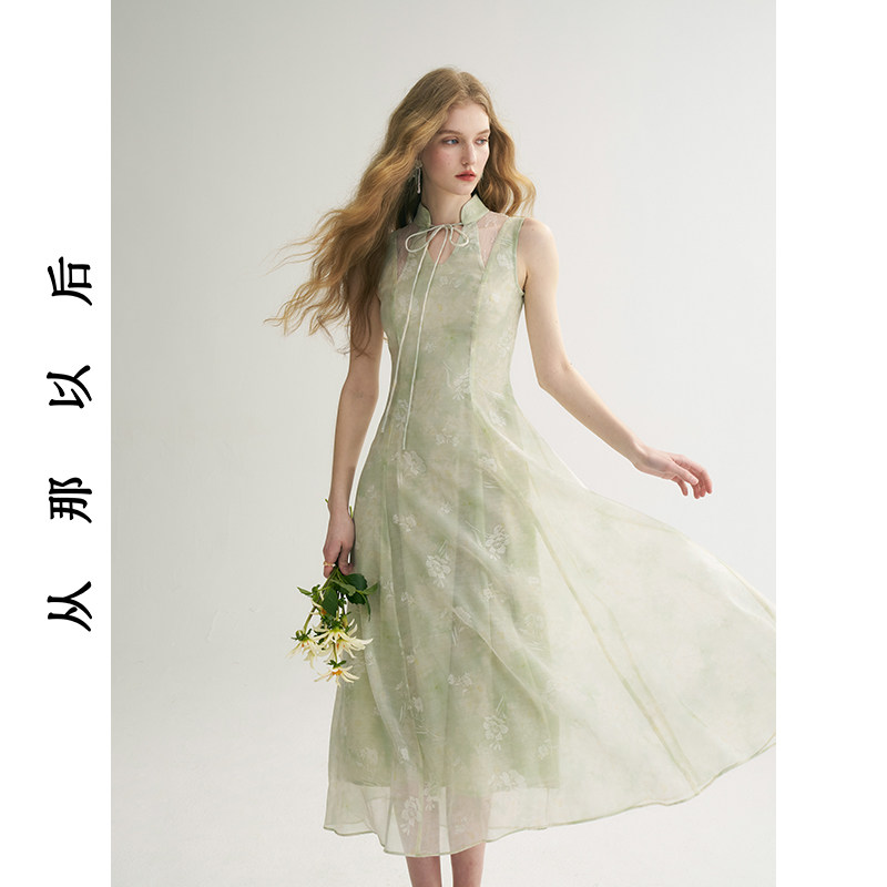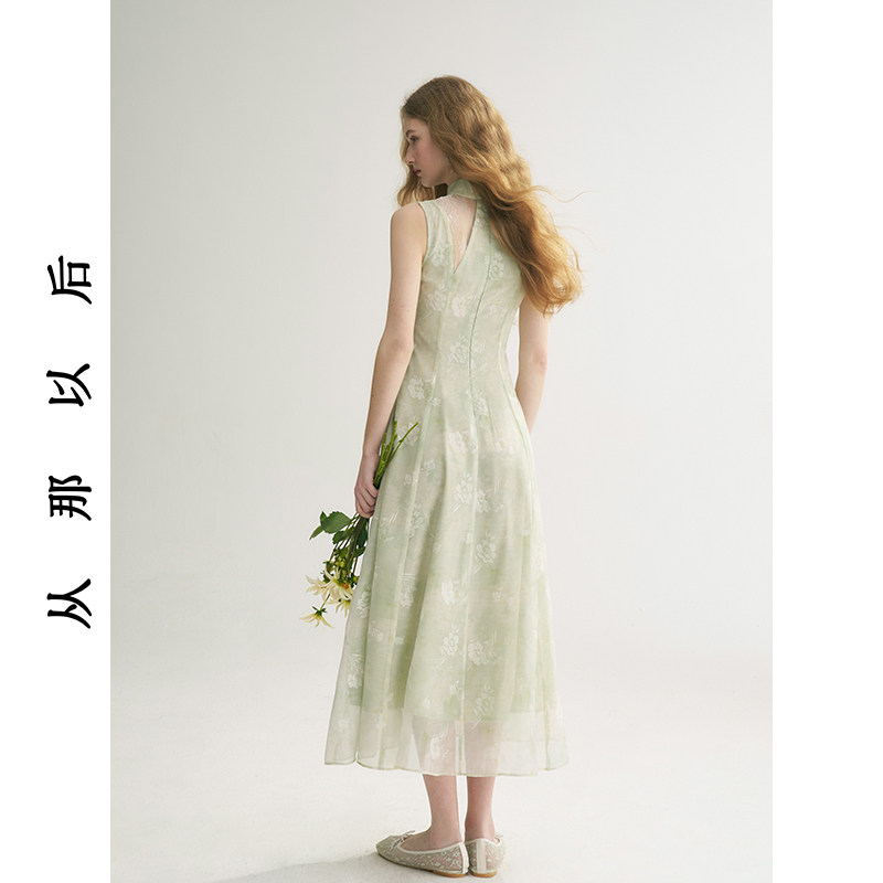 从那以后新中式风印花连衣裙无袖长款裙子高级感轻礼服长裙女夏季