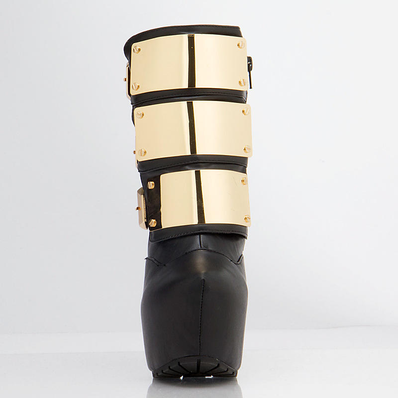 新款短靴春秋超高防水台高跟靴闪亮金属扣细跟色女靴踝靴直销
