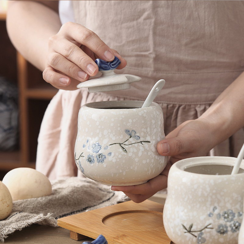雪花瓷调味罐小勺子带盖调料罐盐砂糖辣椒味精罐佐料盒油壶酱油壶