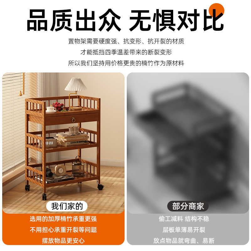 移动置物架多层收纳架落地楠竹客厅卧室移动茶几厨房麻将室小推车