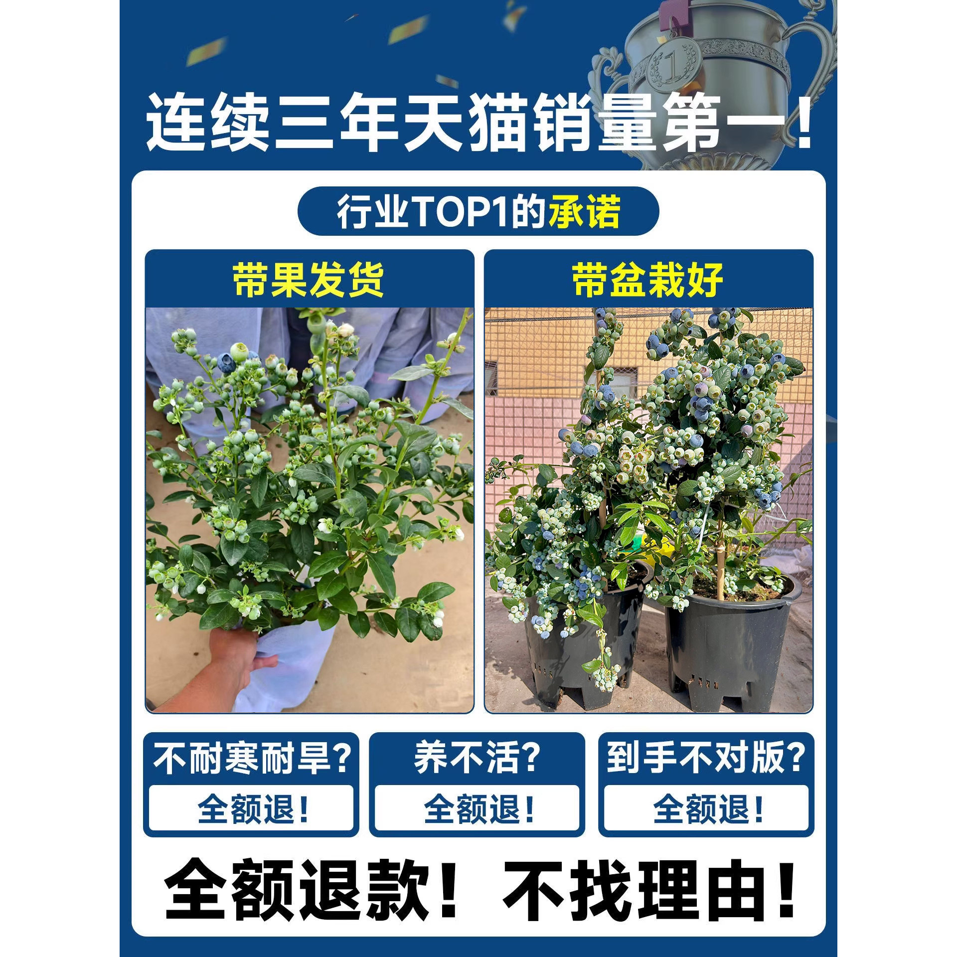 蓝莓树果苗盆栽特大带果蓝梅树苗南北方种植水果苗车厘子四季结