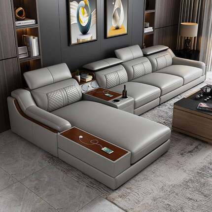 皮沙发皮艺沙发客厅软体L型沙发组合工厂直销现代功能大户型转角