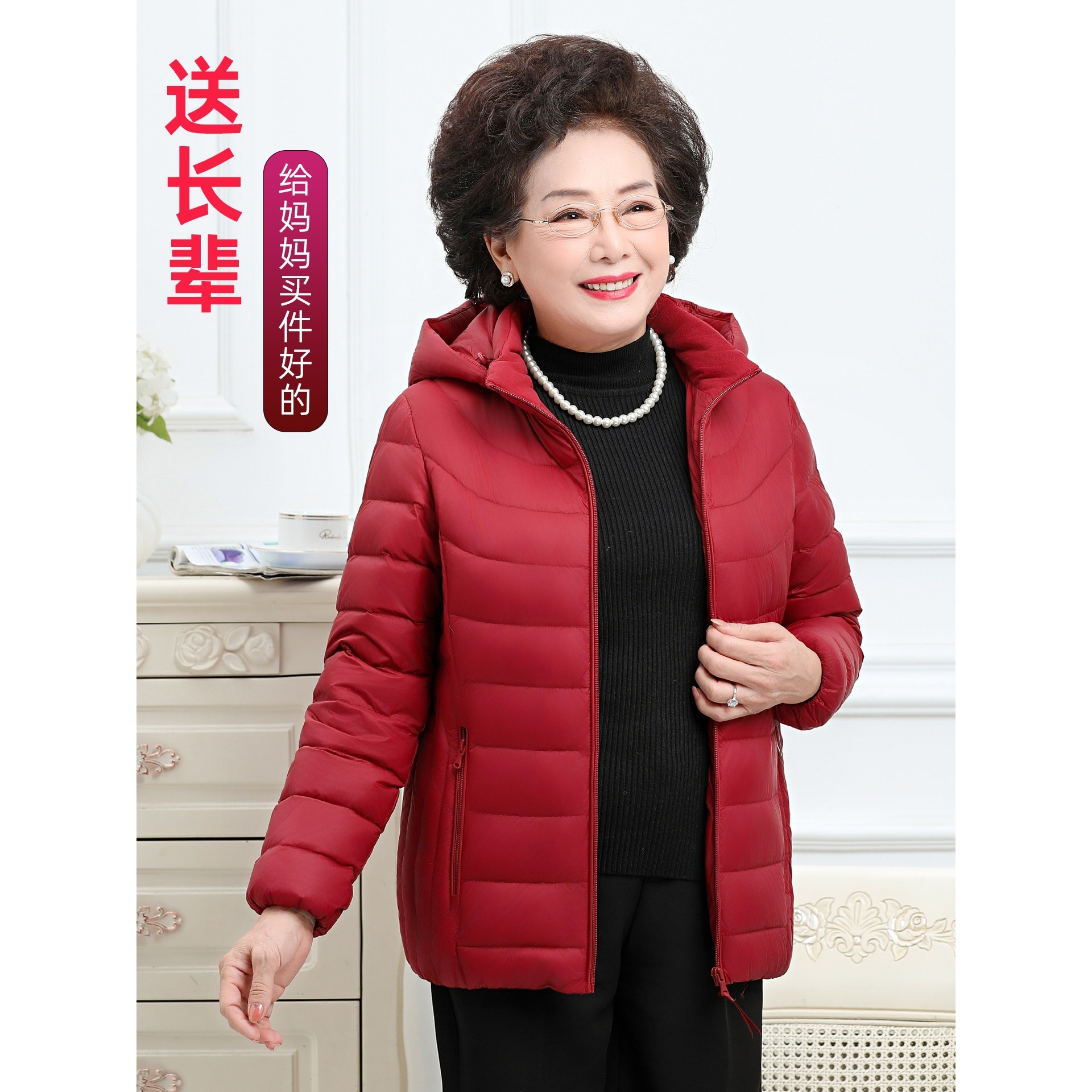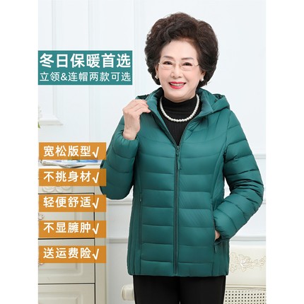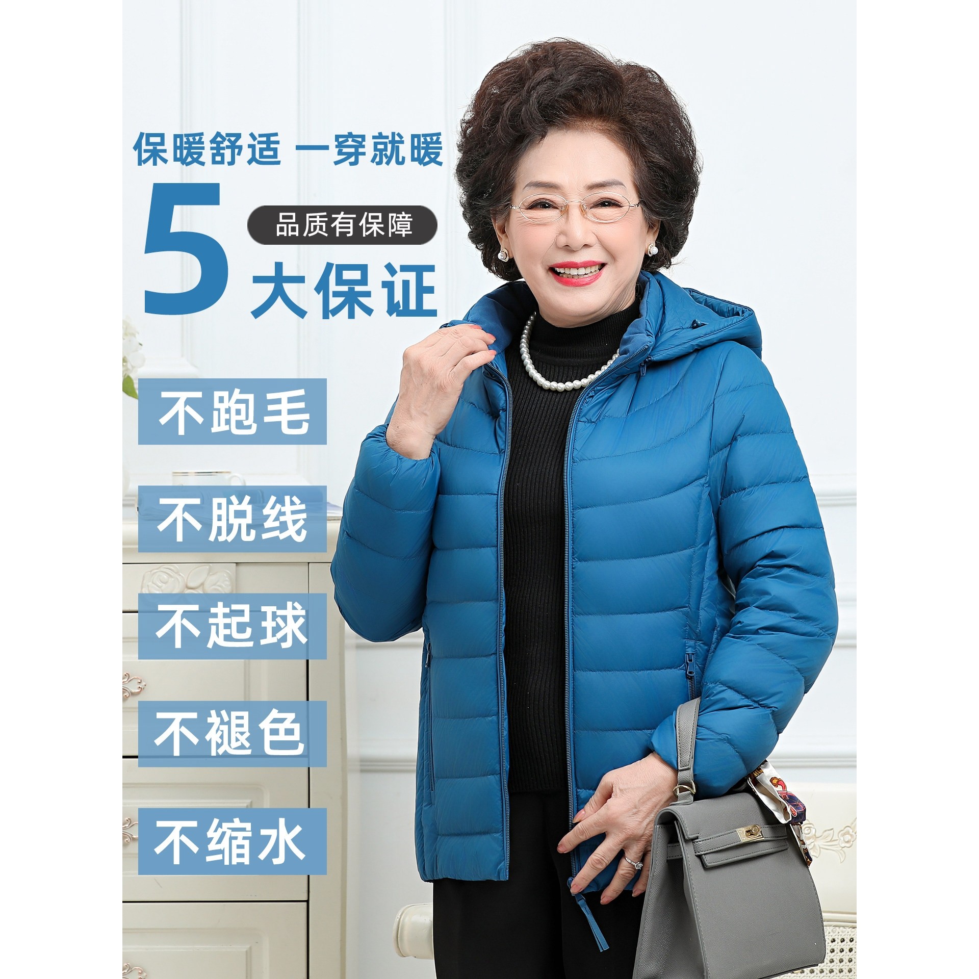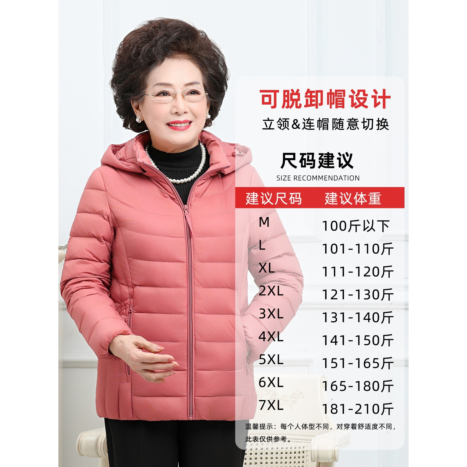 凯乐石薄荷新款羽绒服女妈妈装中老年冬季轻薄款脱卸帽宽松大码外