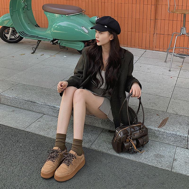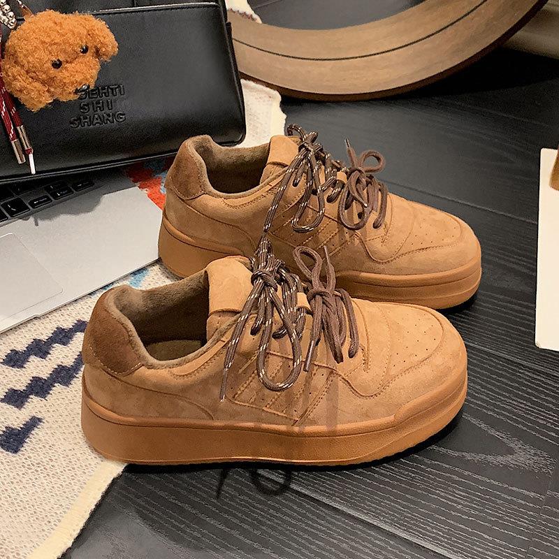 双鞋带厚底小白鞋女2024新款运动休闲鞋韩版百搭圆头系带学生板
