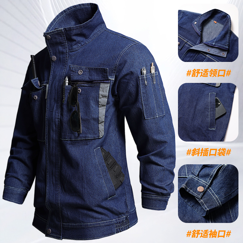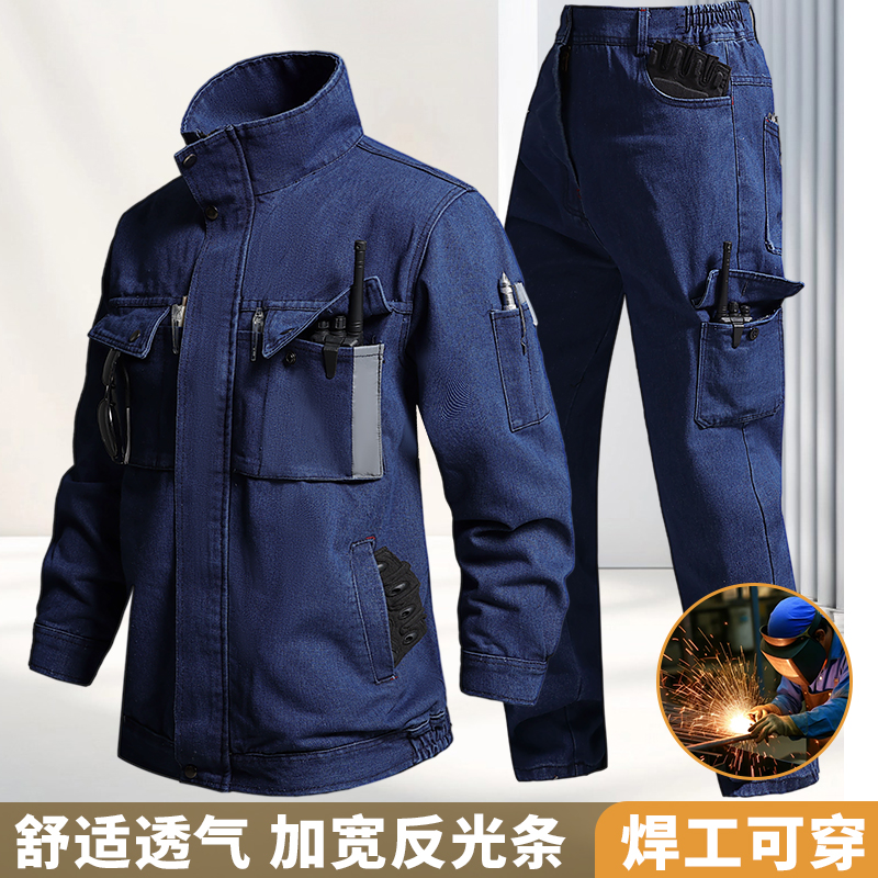 牛仔电焊工作服套装男春秋季纯棉加厚劳保服阻燃防烫耐磨工装工服