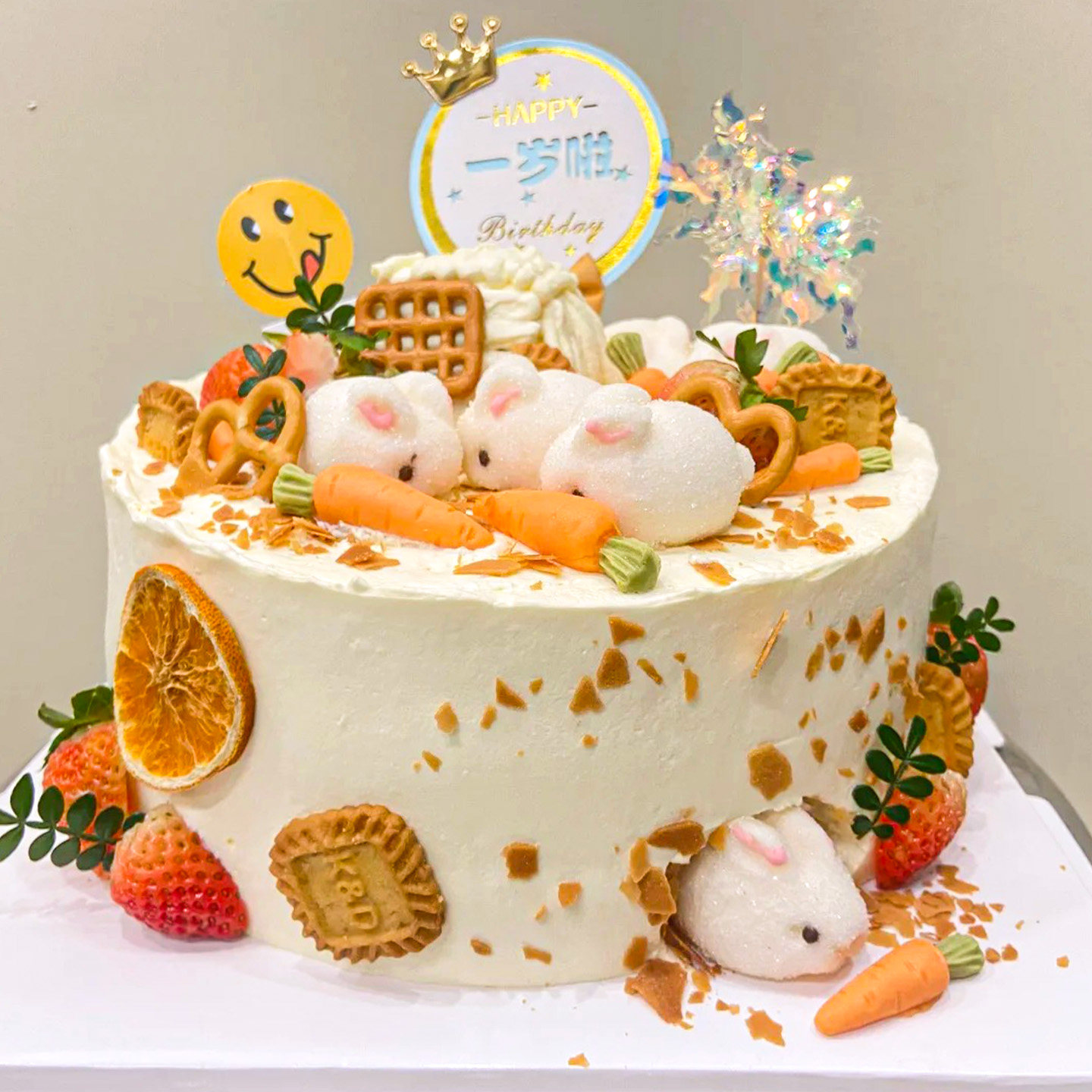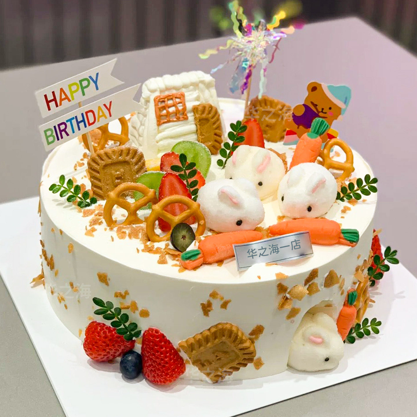 网红蛋糕装饰摆件胡萝卜巧克力兔子棉花糖儿童生日甜品烘焙点缀