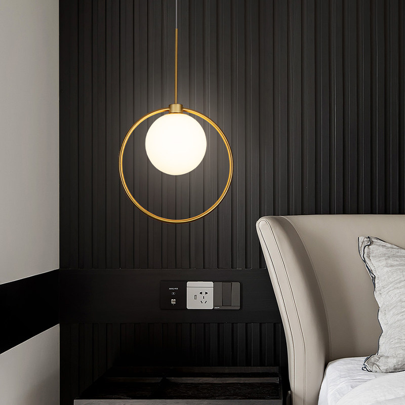 卧室吊灯轻奢温馨床头吊线灯ins风背景墙灯书房单头金色鱼线灯